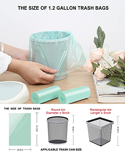 1.2 Gallon Small Trash Bags Garbage Bags, AYOTEE Mini Compostable Strong Bathroom Wastebasket Can Liners trash Bags for Home Office Kitchen fit 5L,5 Liter,1 Gal,Green