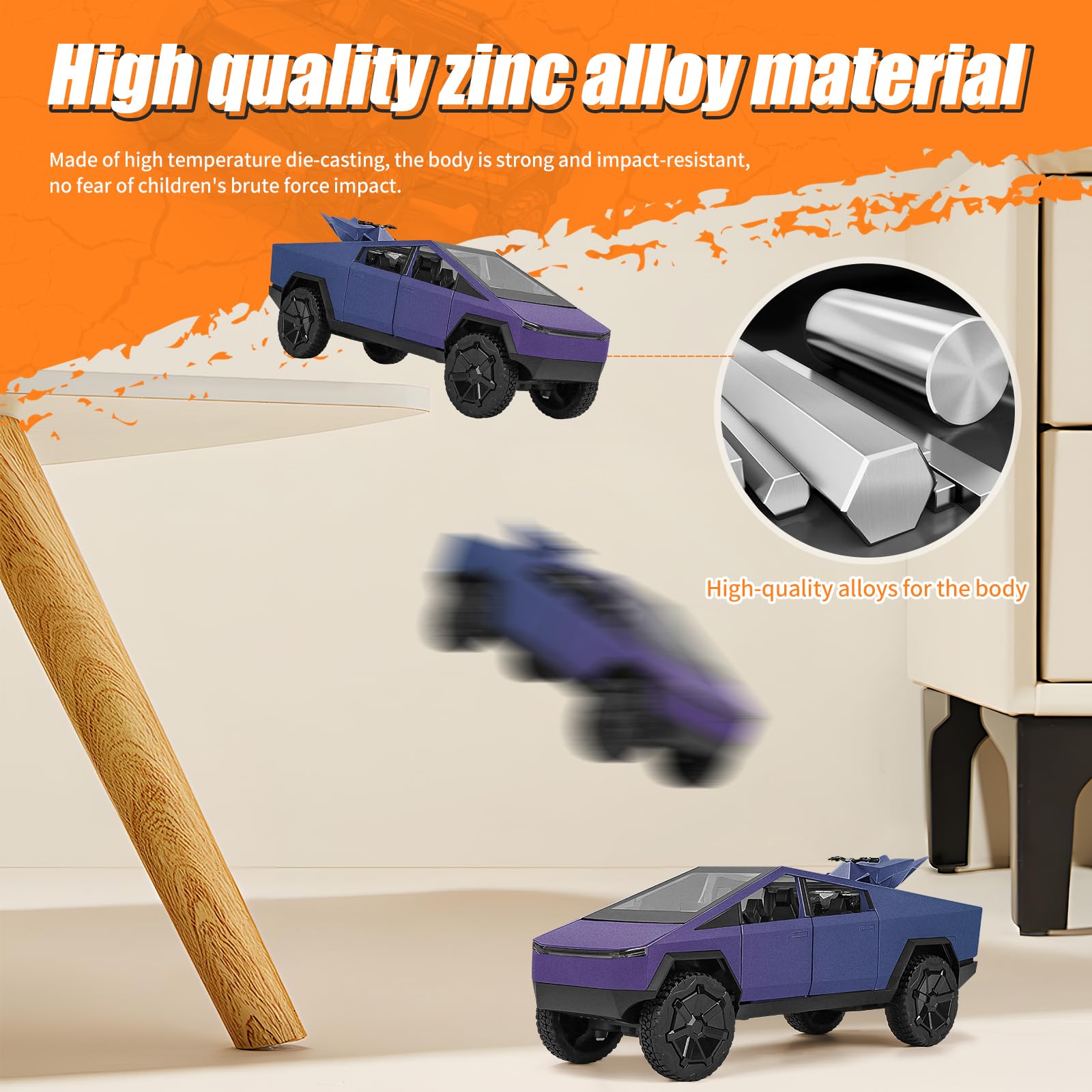 - Premium Materials for Durability and Safety:Crafted from high-quality diecast metal alloy and superior ABS material, our cybertruck toy is robust and long-lasting. The sturdy body and safe interior decorations make it ideal for children's entertainment. Certified by CPC and CPSIA after passing rigorous quality tests, it ensures worry-free play for kids