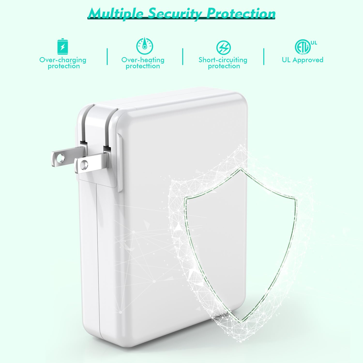 - Wide Compatibility: The charger is compatible with USB C port MacBook Pro, MacBook Air (16, 15, 14, 13 inches), iPad Pro, iPad Air, and all Type C devices. With its automatic identification feature, it adjusts charging power according to your device’s requirements.