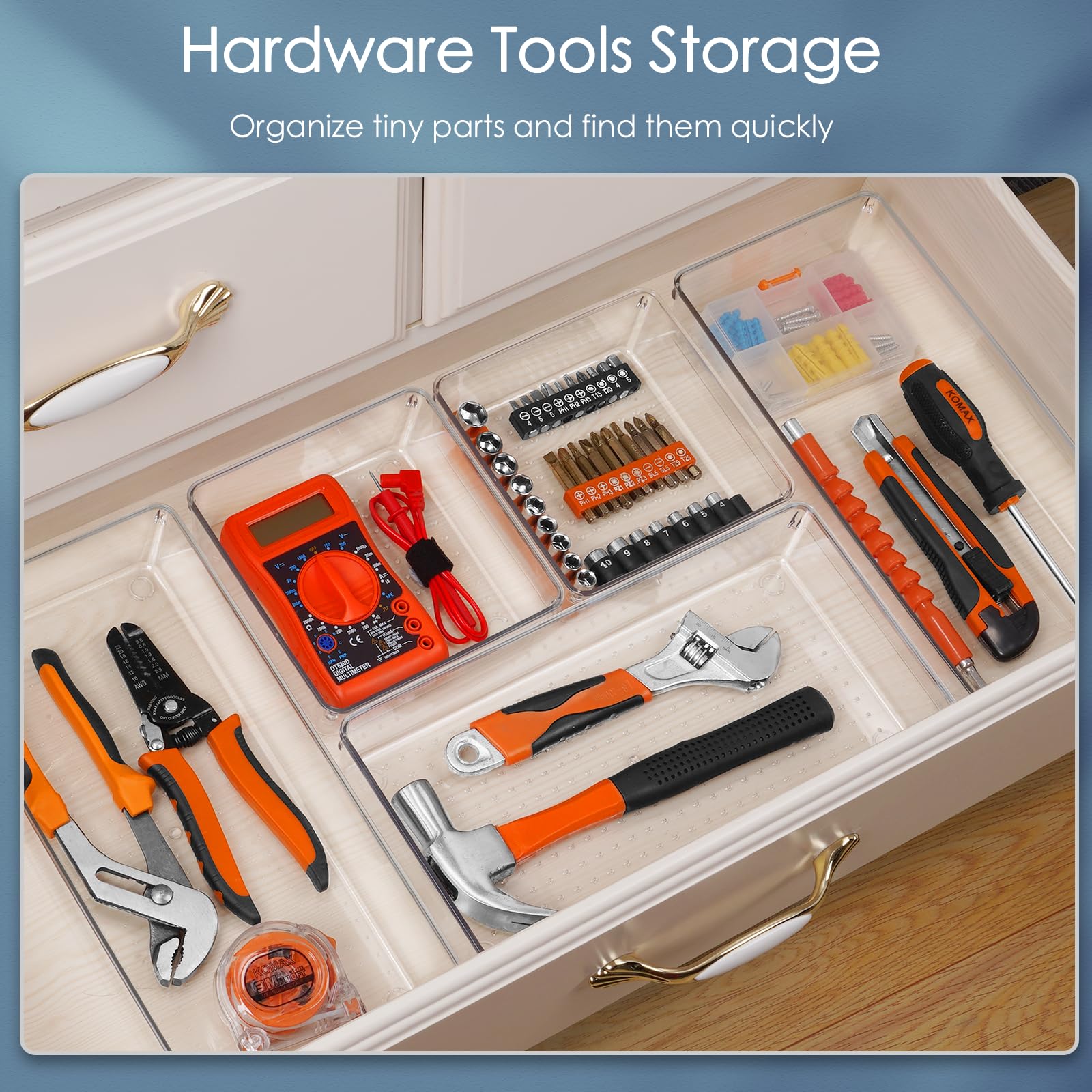 12 Pack Large Clear Plastic Drawer Organizer Set, Acrylic Bathroom Organizer Vanity Trays Dividers, Kitchen Organizers and Storage, Non-Slip Storage Bins for Makeup, Snacks, Office, Desk, Fridge