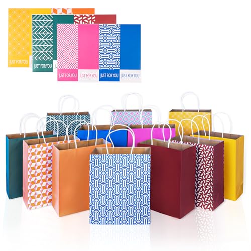 - IMPRESSIVE DESIGNS: Details is means everythings, including visual appeal. This bulk pack of paper bags with handles features a variety of solid colors and eye-catching geometric patterns, giving you the flexibility to choose the perfect bag for party favors, holiday gifts, or even stylish shopping bags.