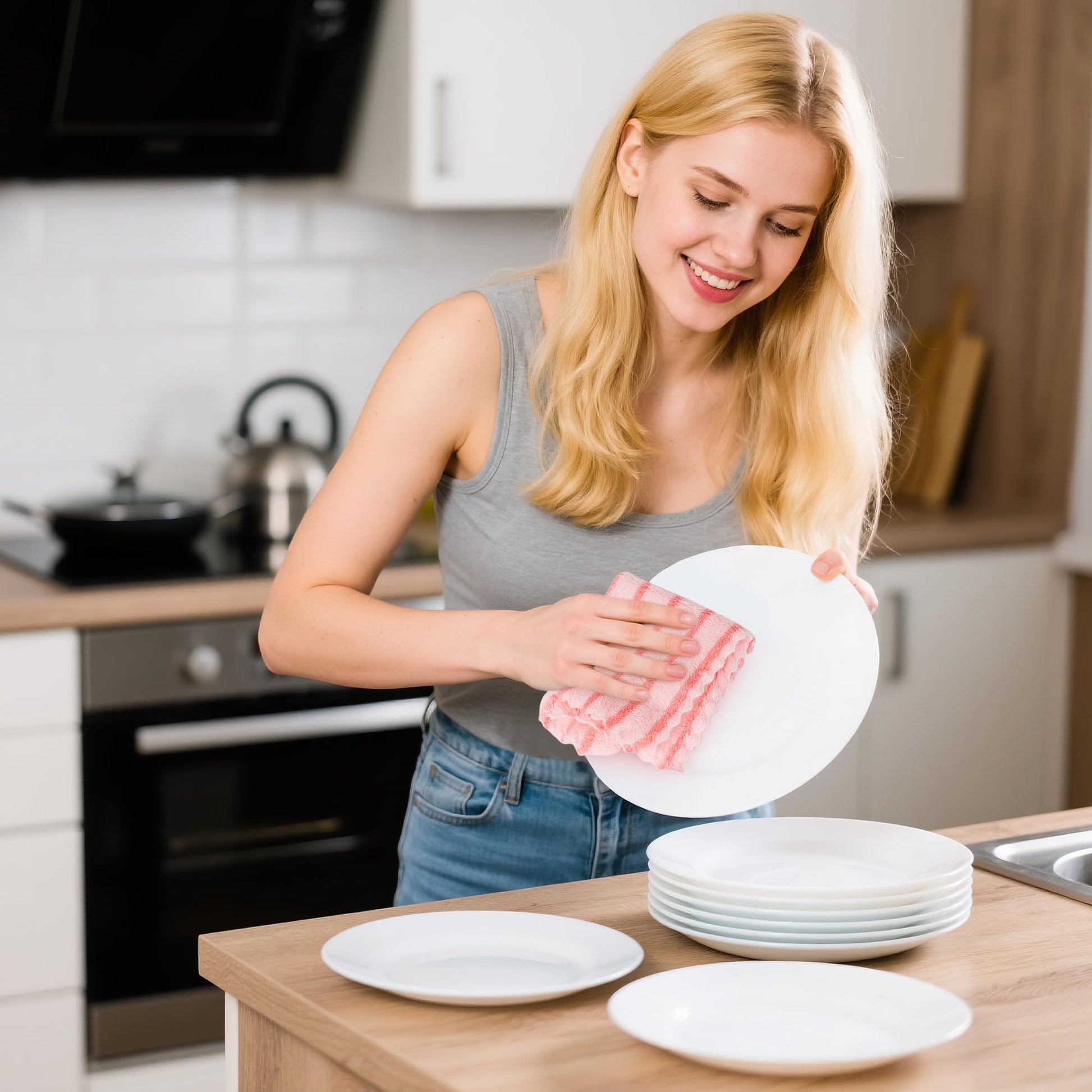 - 12-Piece Great Value Set: Get 6 dishcloths and 6 kitchen towels in a pink dish towel set. Durable and budget-friendly for any home
