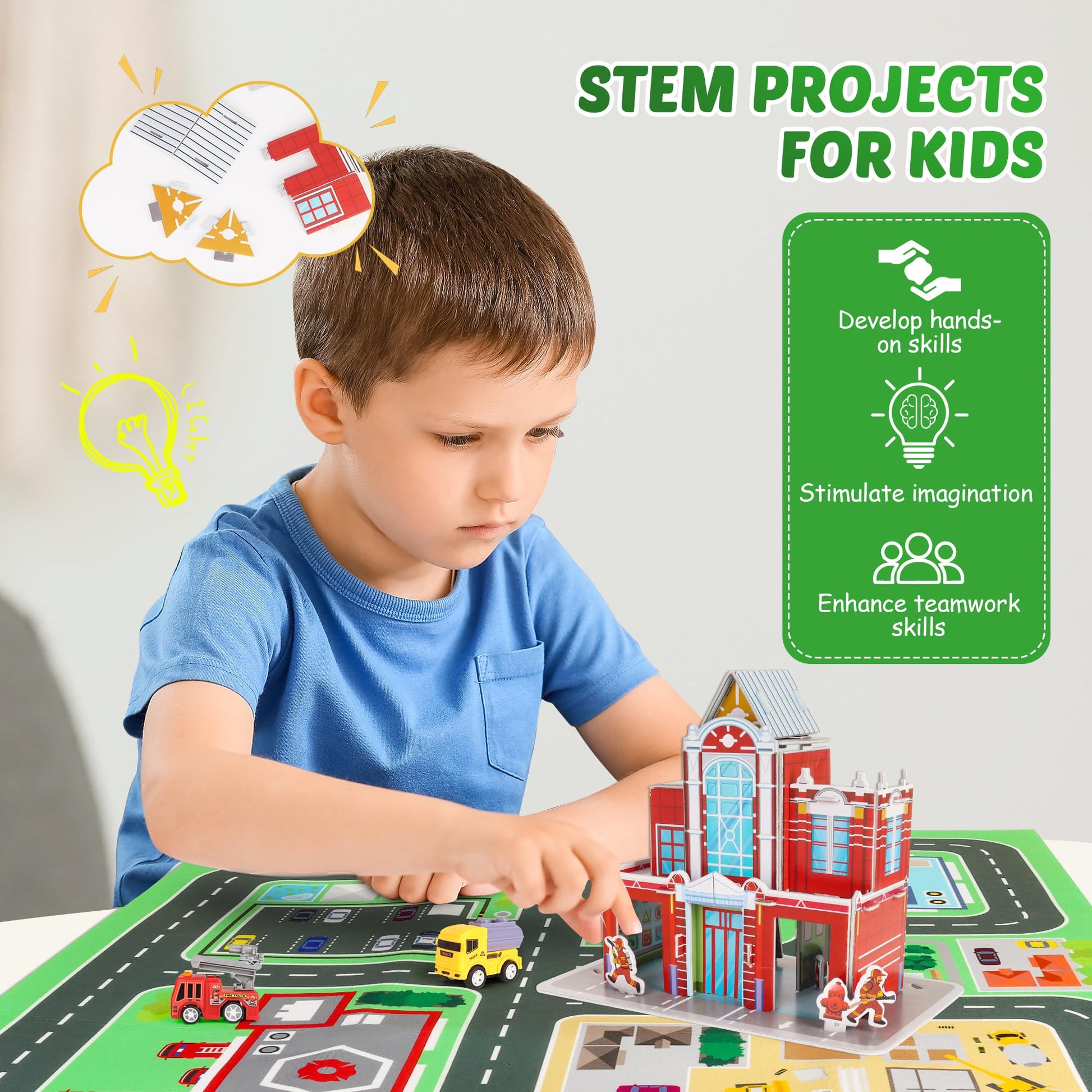 - 【Interactive 3D Puzzle Bonus】Buildable fire/police station puzzles with numbered snap-together pieces (no glue/tools). Parent-child bonding activity promoting spatial reasoning & problem-solving. Compatible with toy cars for expanded storytelling - doubles play value!