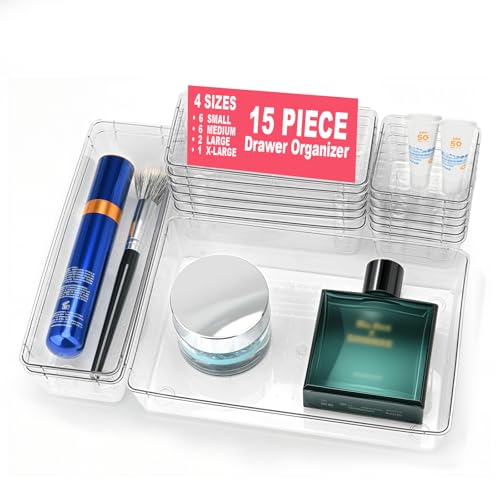 15 Pack Drawer Organizer Trays, Plastic Storage Bins
