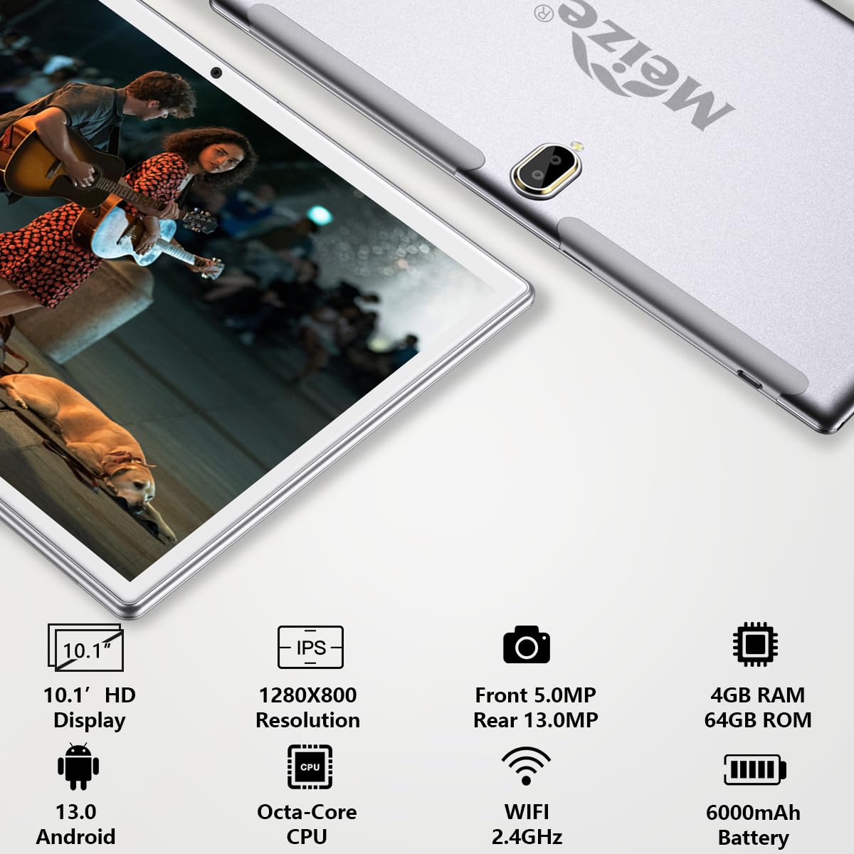 ★Tablet Technical Parameters ●Product Model: MEIZE K116 ●CPU: Octa-Core 1.6GHz+1.2GHz ●Signal: 4G+WiFi ●HD Video: 1080P IPS/HD ●Dimensions: 10.1x6.5x0.2 Inch ●Weight: 1lb ●TP: Capacitive Multitouch (10 Points) ●Memory: 4GB RAM + 64GB Internal Storage (Expandable to 128GB) ●Pixel: 13MP Rear & 8MP Front Camera ●Wireless Connectivity: Bluetooth, WIFI, Hotspot, GPS, etc. ●Unlock Mode: Slide, Password, Pattern. ●Built-in Battery: 6000 mAh ●Type of Power: 5V/2A Fast Charge ●Device: Built-in Dual Speakers ●Device: Built-in Microphone ●USB Port: 1x Micro USB Port ●Extended Card Slot: 1 x TF Card Slot ●SIM Card Slot: Dual 4G SIM Card Slot ●Google Assistance Voice Control: √ ●Cellular Data:(All 3G, Some 4G Frequency Bands) GSM: 850/900/1800/1900MHz WCDMA: 850/900/1900MHz/2100M TD-SCDMA: B34 39 TDD LTE: B38/B39 /B40 /B41 FDD LTE: B1(2100)/B2(1900)/B3(1800)/B5(850)/B7(2600)/B8(900)/B28(700)