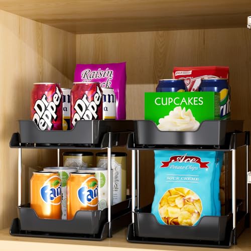 2 Pack Black Under Sink Organizer, Multi-Purpose kitchen and Bathroom organization,Pull Out Drawers Organizer,pantry organizersalso used for countertop,makeup and medicine cabinet storage.