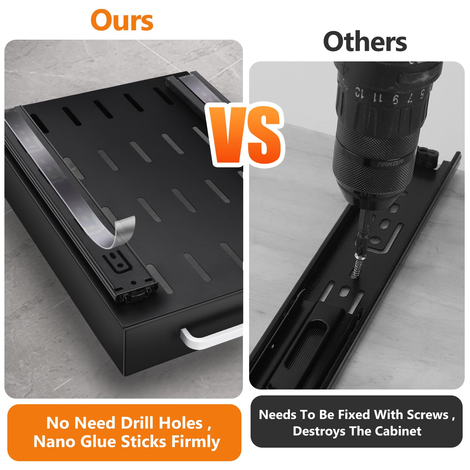 - 【Strong Bearing Capacity】:Our sliding cabinet organizer pull out shelves are made of high-quality carbon steel and paired with aluminum alloy rust resistant handles. The sturdy structure of this sliding cabinet organizer will provide strong load-bearing capacity, making it easy to store and organize loose items.