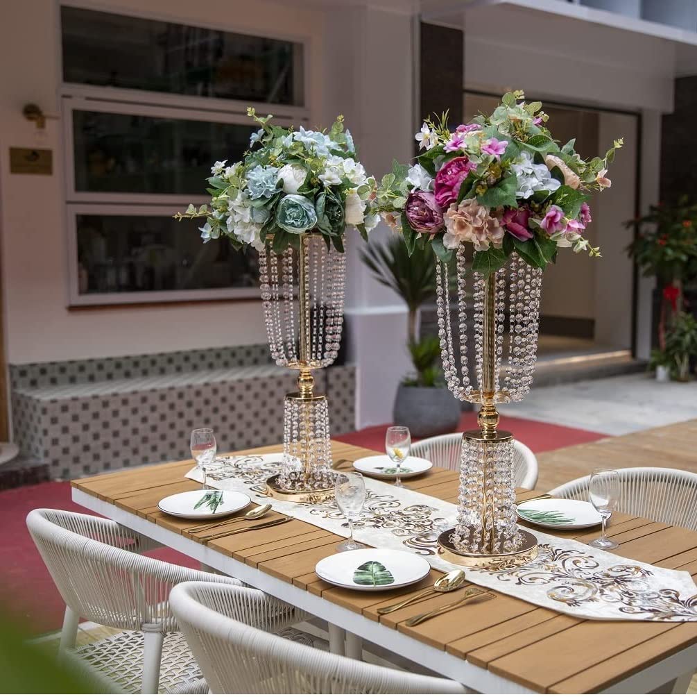 - PACKAGE INCLUDES: 2pcs gold vases for centerpieces measured in 23.63"/62cm in height and 7.87”/20cm in diameter. Fake flowers for decoration are not included.