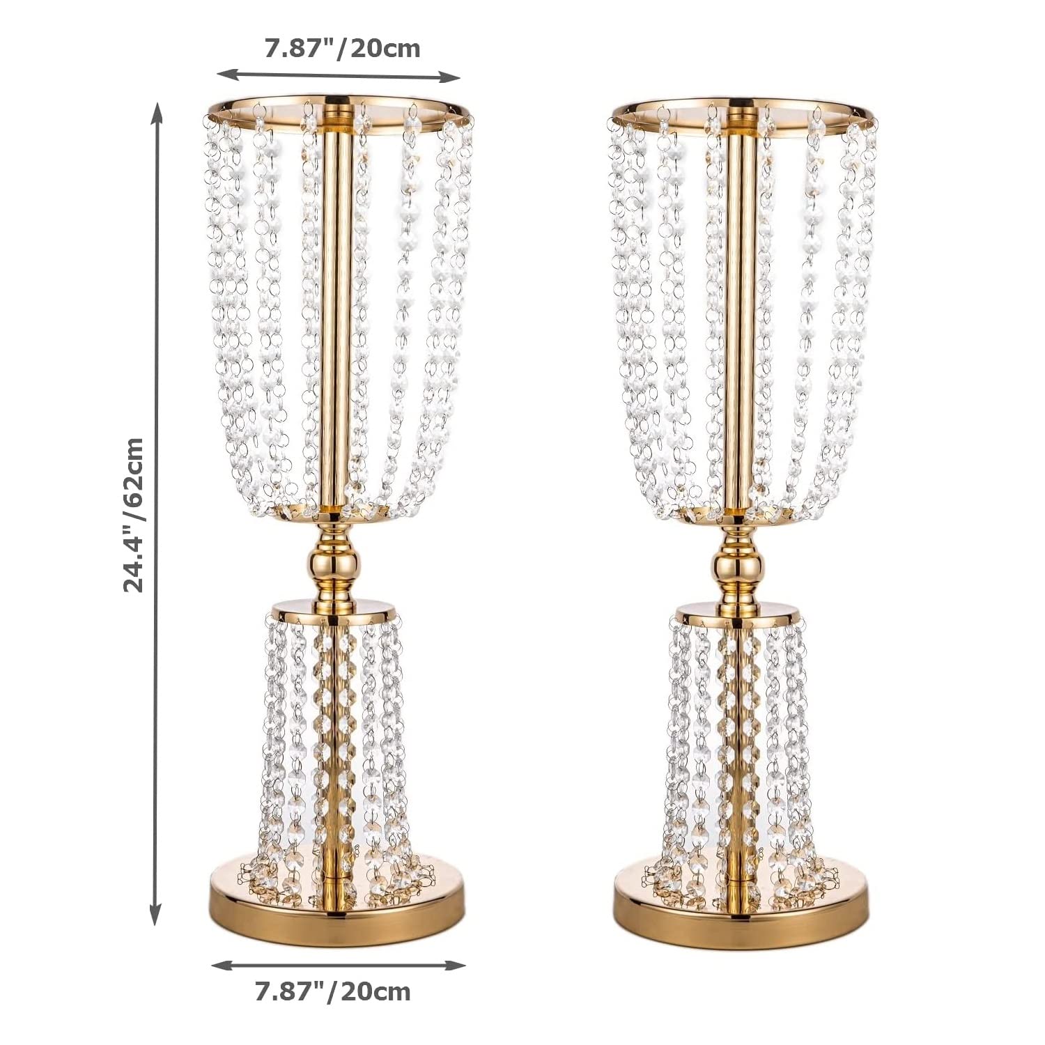 - GORGEOUS: Exquisite cylinder pedestal stands adorned with crystal bead pendants in unique shape makes the gold chandelier looks elegant and beautiful, which would definitely contribute to creating a gorgeous and romantic atmosphere in your wedding or reception.