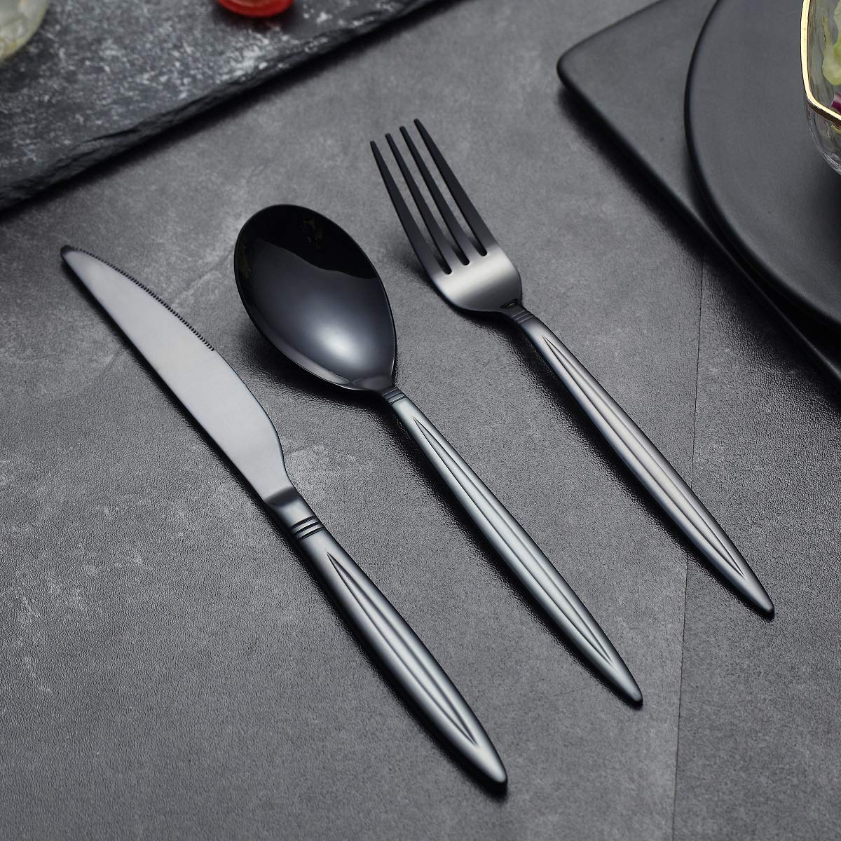 - 【Titanium Black Noble Color】Stylish atmospheric flatware set, Let your tableware stand out,Let you eat with your family and friends,Have a wonderful meal.