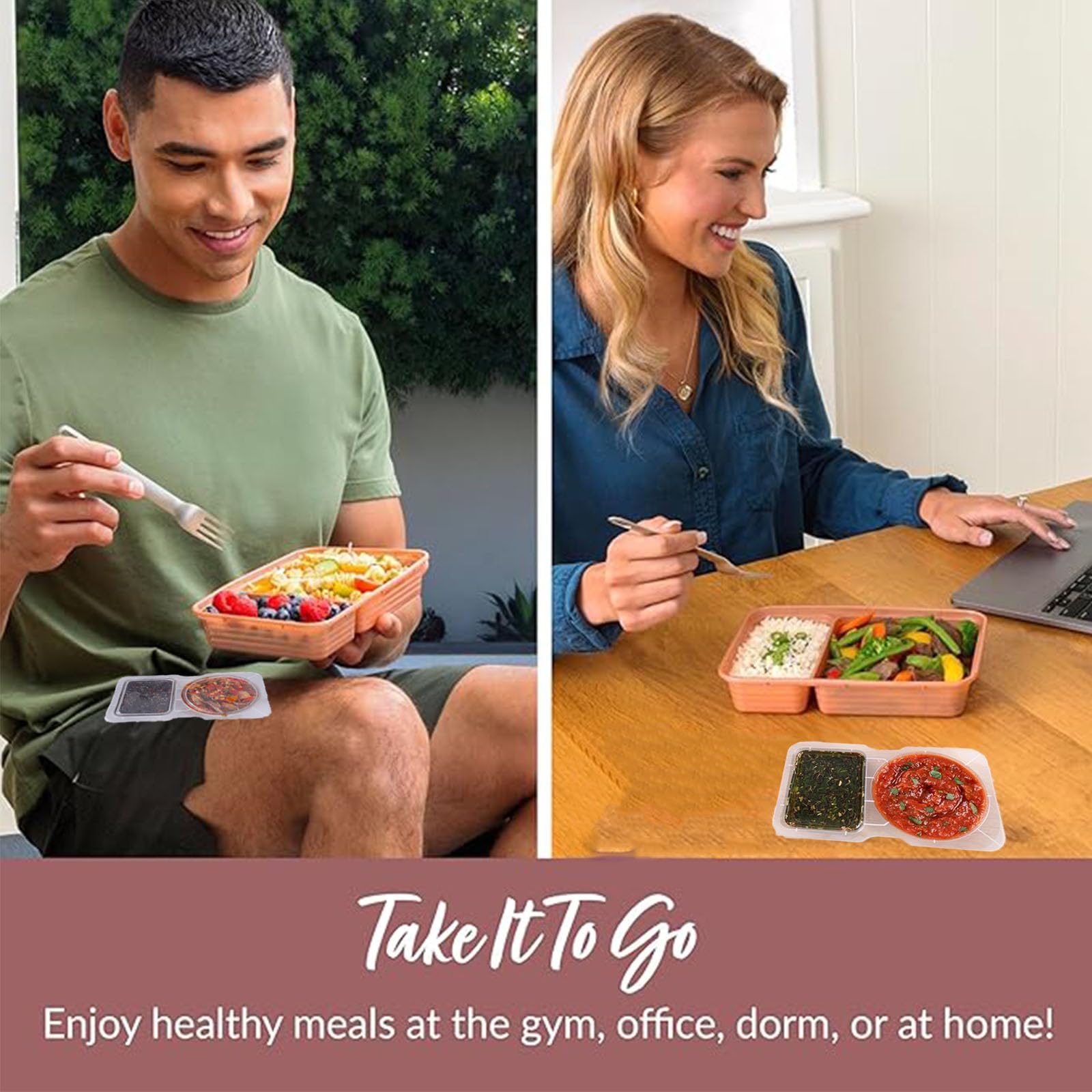 - 【Smart Portion Control】: The two-compartment design separates snacks and condiments, ensuring nothing mixes together. Perfectly sized for anyone on a diet looking for the ideal snack portion. Great for lunchboxes, meal prep, or on-the-go snacking.