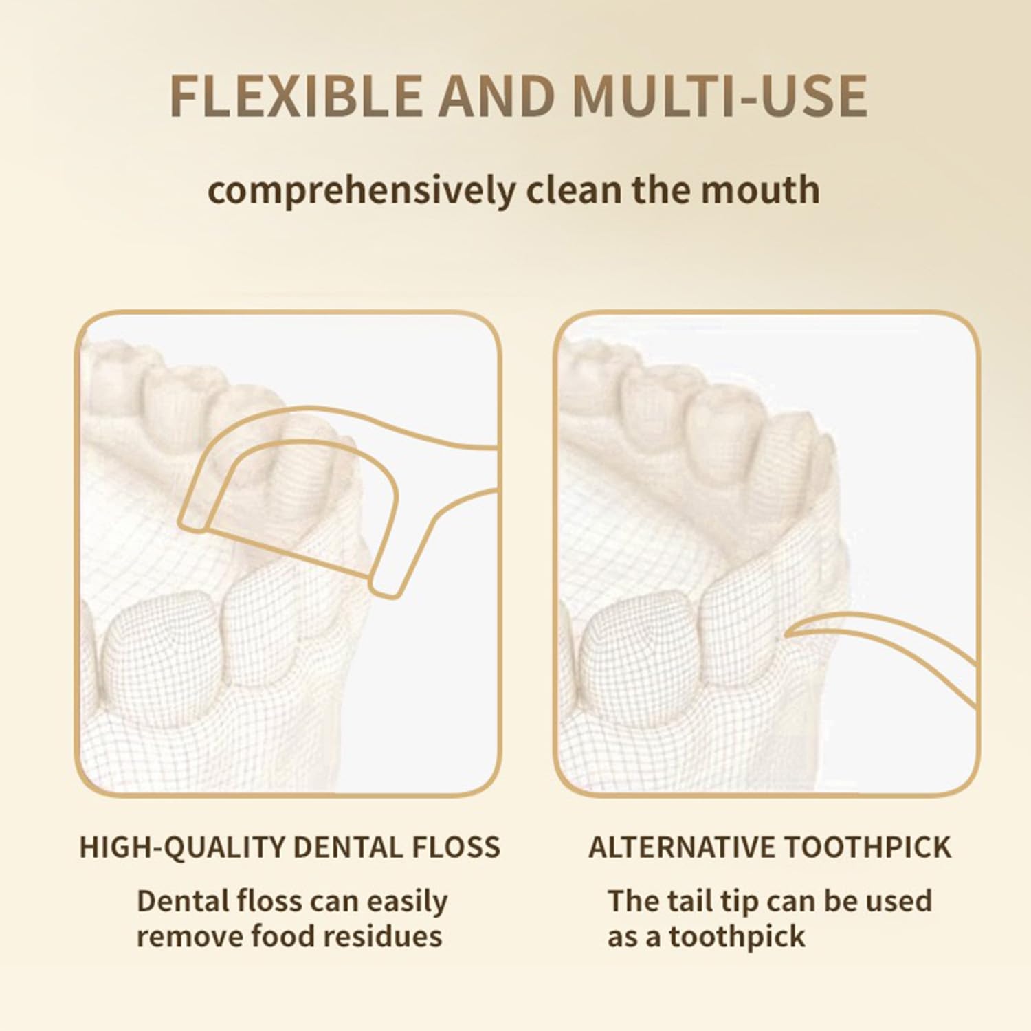 - 【2-IN-1 FUNCTION】 On the one hand, our mint dental floss picks help you to clean food debris between your teeth. On the other hand, the end of the dental floss picks threaders handle could be used as the toothpick to help you easier to pick your teeth.