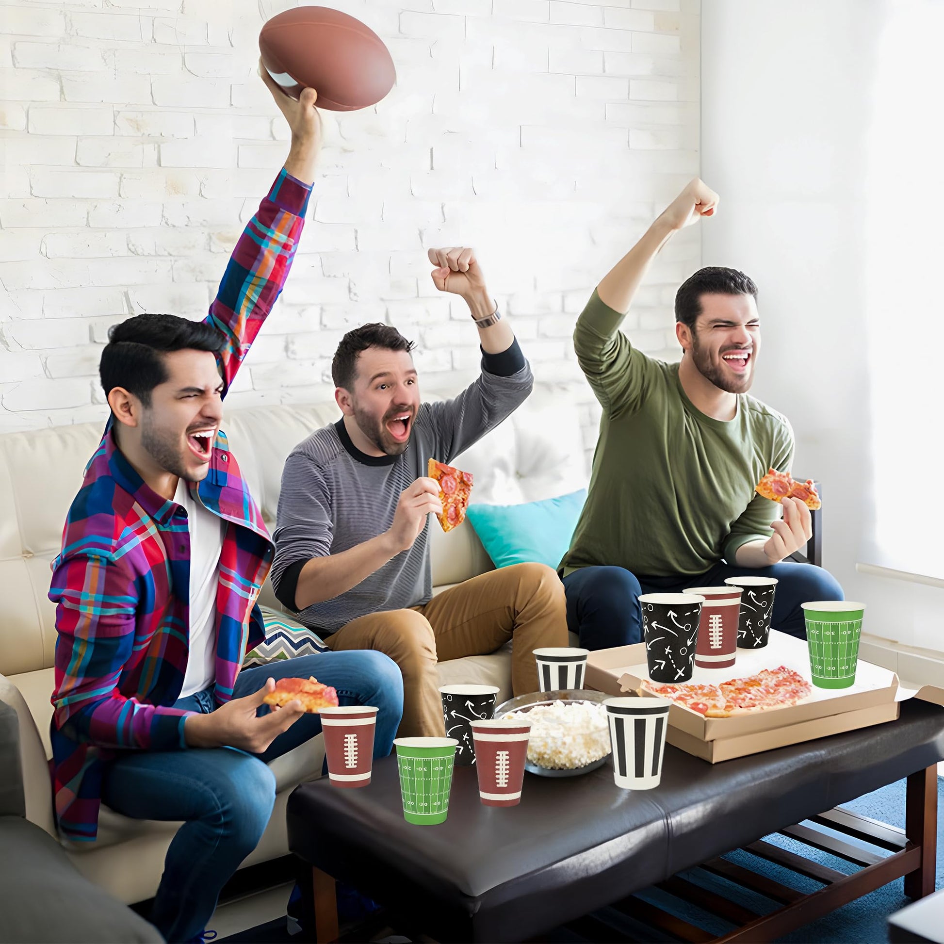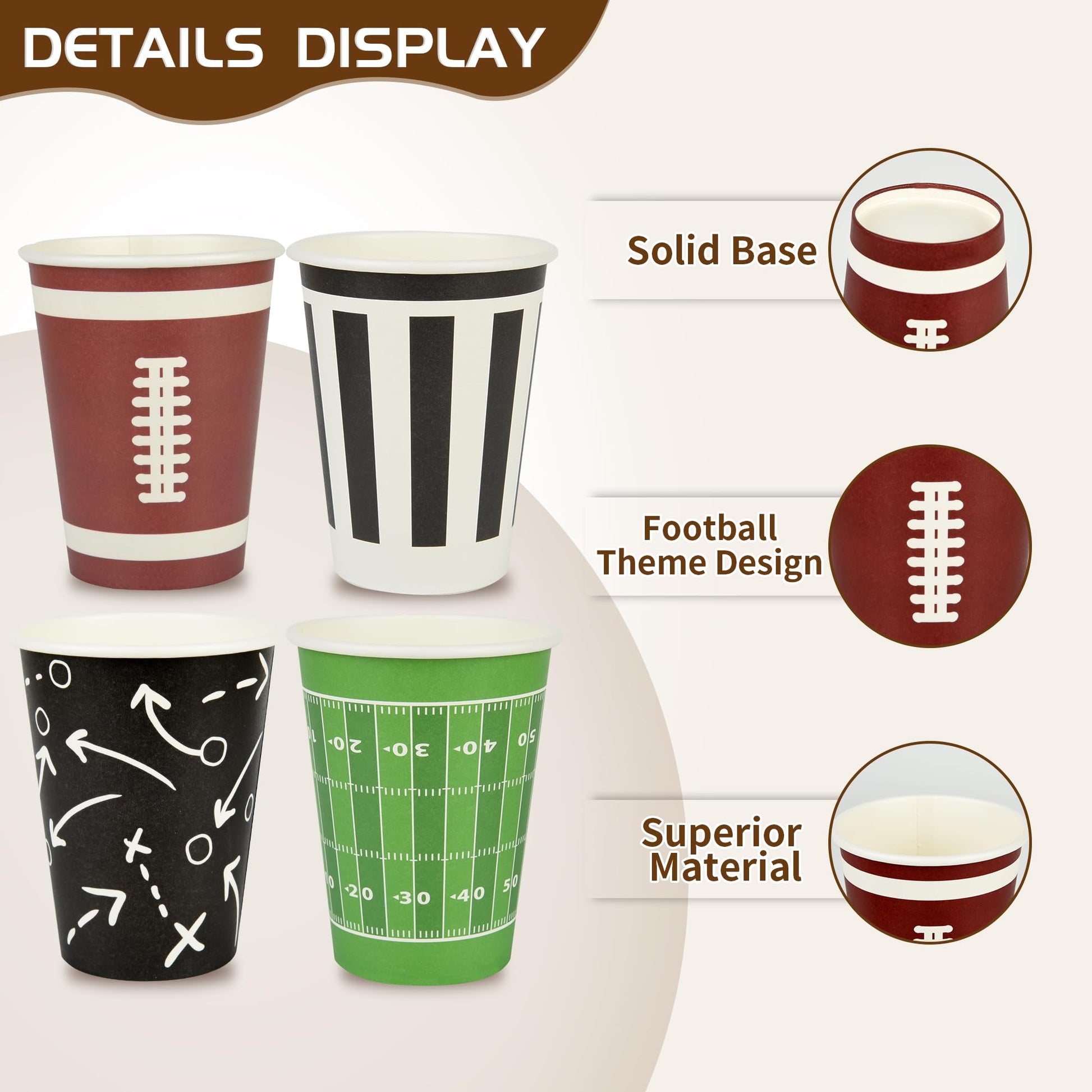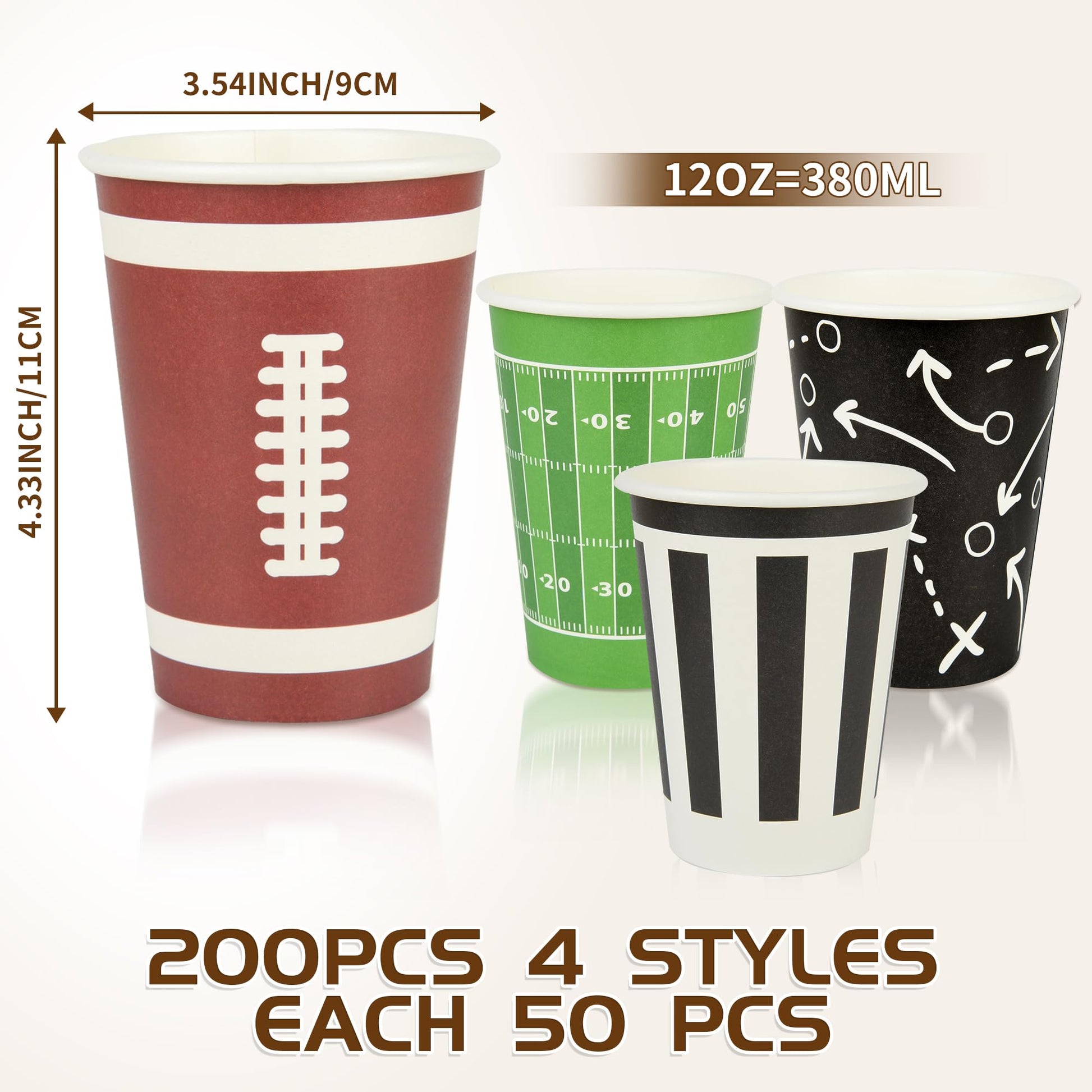 - Package includes: the package comes with 200 Football themed disposable paper cups,. A sufficient number of 4 different football pattern is enough to meet your party need, a complete football party favor set for your use.