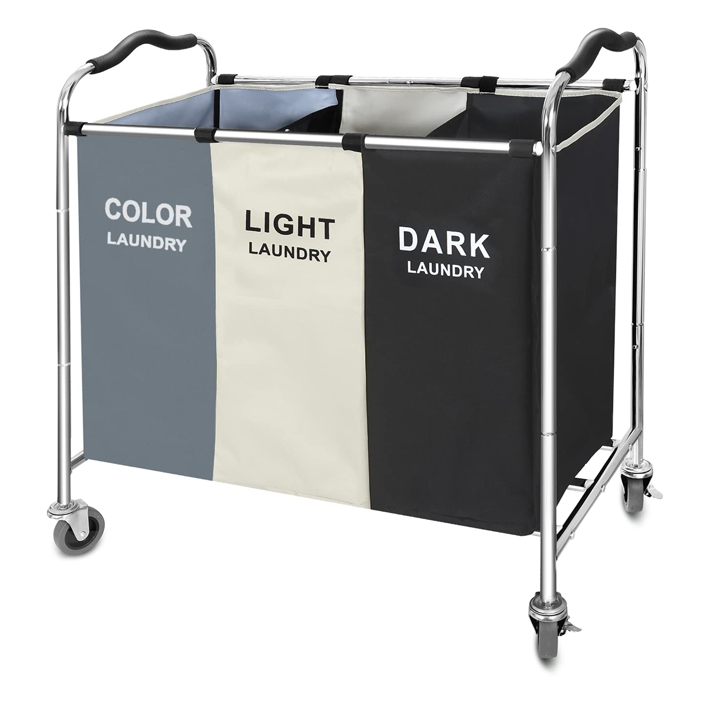 Details: YUELAN 240L Laundry Hamper Sorter Basket 3 section Organizer for Dirty Clothes,16 X 30 X 35 inch Heavy Duty Rolling Wheels with Break (White)