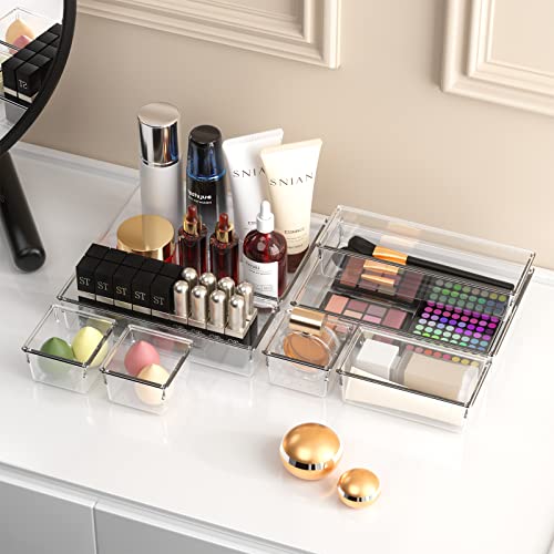- 【STACKABLE & NON-SLIP】Equipped with 100ps non-slip silicone pads, these clear storage bins could stay securely in place, even during drawer movements. Maximize storage space by stacking them up when not in use.