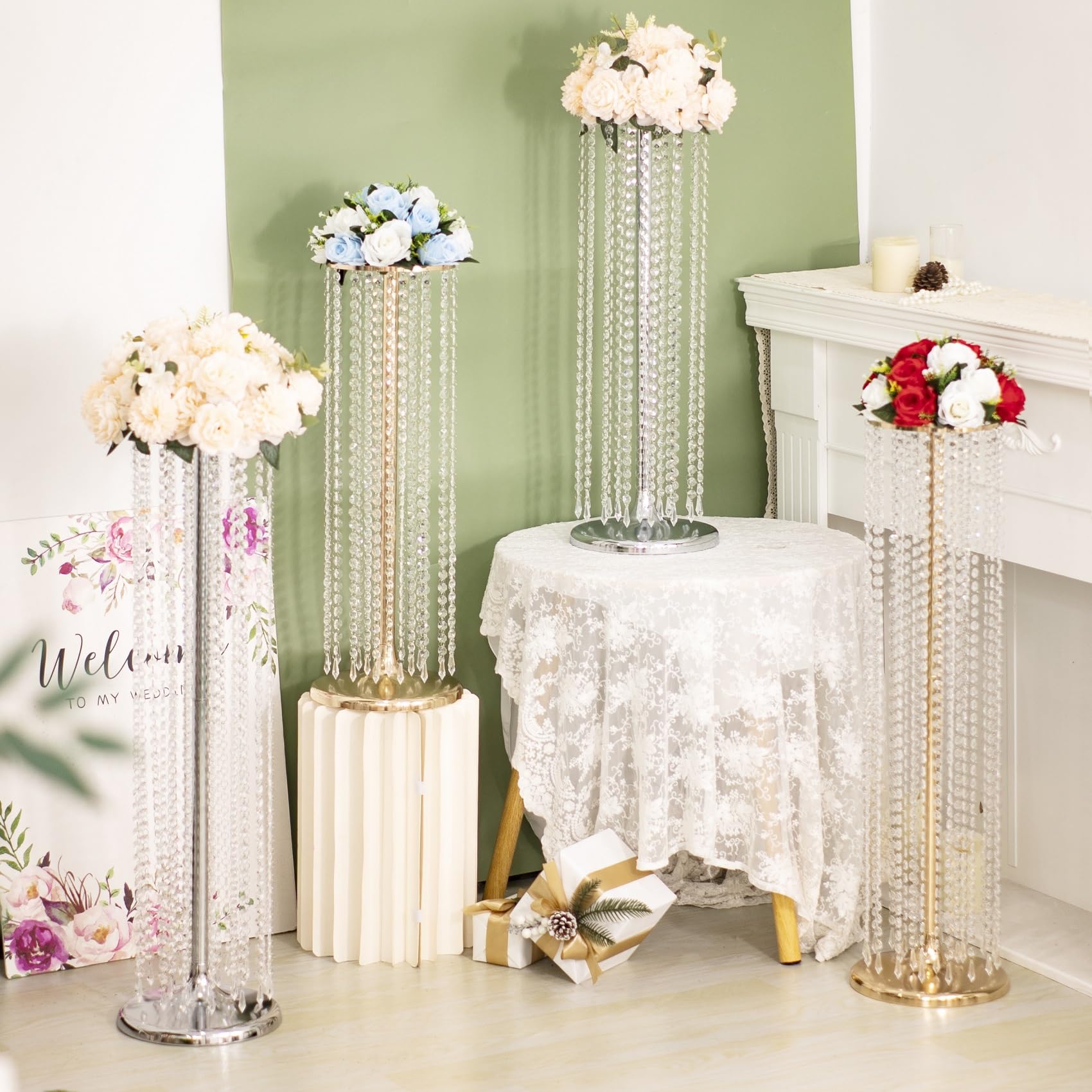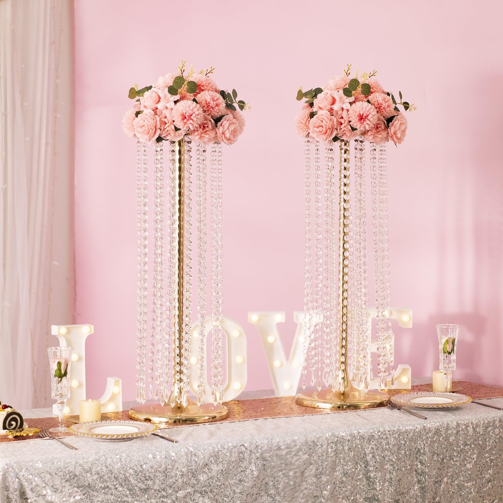 - ELEGANT DESIGN: Being made in modern style adorned with crystal beads, the gold and crystal centerpieces look glorious and elegant, especially under the lights.