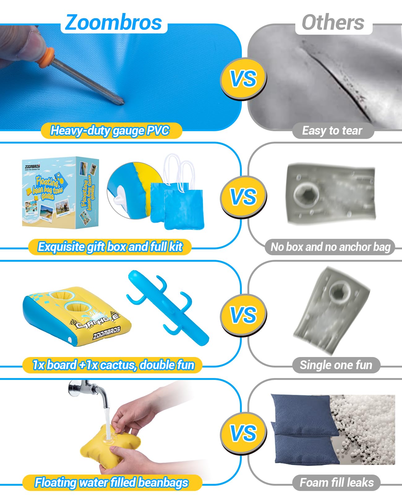 - Includes 1 floating target board (37.5x28.5inch), 1 inflatable cactus 4.2ft, 6 floating bean bags, 6 rings and 2 anchor bags with 63inch strings plus 1 repair patch.