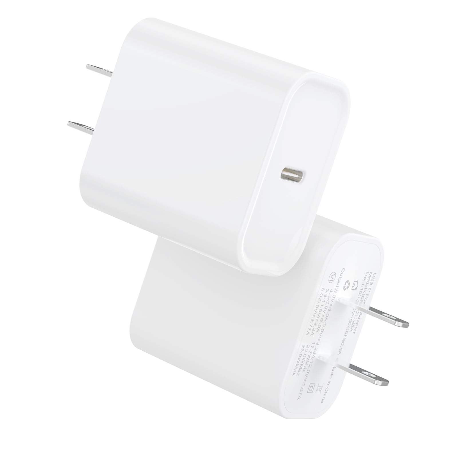 2Pack USB C Charger Block 20W, iGENJUN USB-C Power Adapter - iPhone Charger with Fast Charging Capability, Type C Wall Charger for iPhone 15/15 Plus/15 Pro Max/14 Series, Galaxy, Pixel, Pad - White