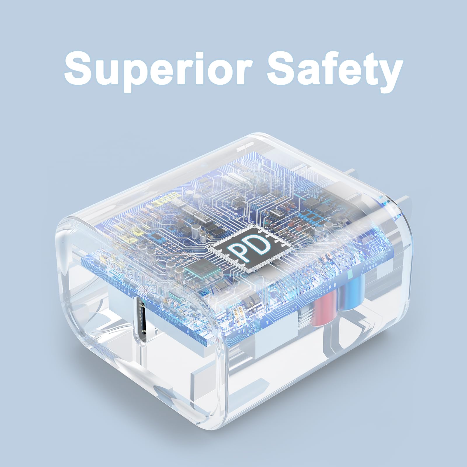 - Advanced Safety Features: With built-in intelligent chip,USB PD fast power adapter provides over-current, over-voltage,over-heat and short-circuit protection for your devices to ensure safer charging.
