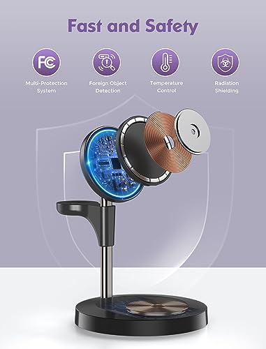 - 🎁 Exquisite Gift - Made of sturdy alloies, this stylish mag-safe charger stand with indicator lights is the perfect charging accessory for desktops and bedsides and a great gift for friends and family! You'll get a 3 in 1 charging station for apple, a 3.3ft/1m charging cable, an adapter, a user guide, a 12-month warranty, and a 10 years wireless charging research and development team as your after-sales support!