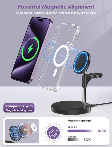 - ⚡ 3 In 1 Mag-Safe Charger Stand - Aeinidi 3 in 1 charging station for apple is a magsafe charger stand for efficient wireless charging of iPhones, Apple Watches and AirPods. With this innovative charging stand, you no longer have to search for multiple chargers or deal with a cluttered desktop. Say goodbye to clutter and hello to convenience!