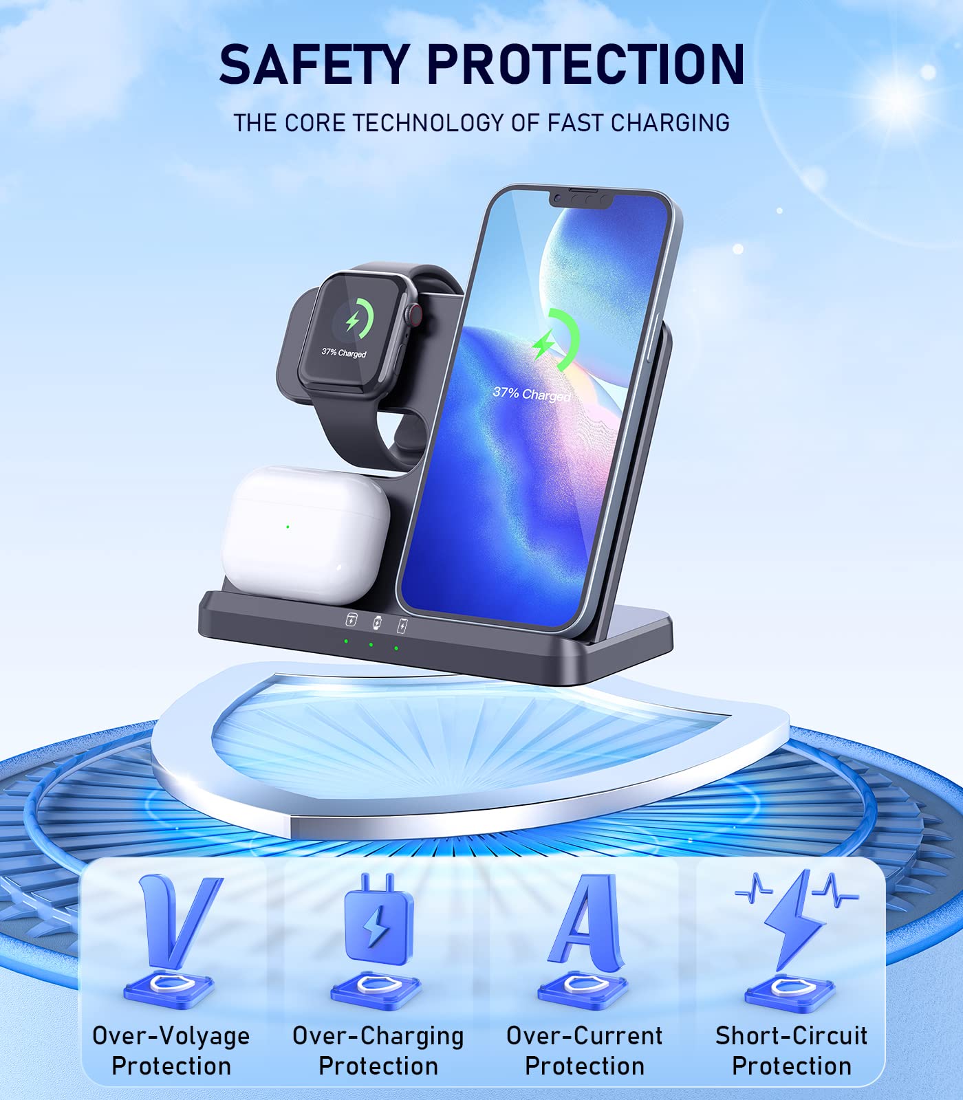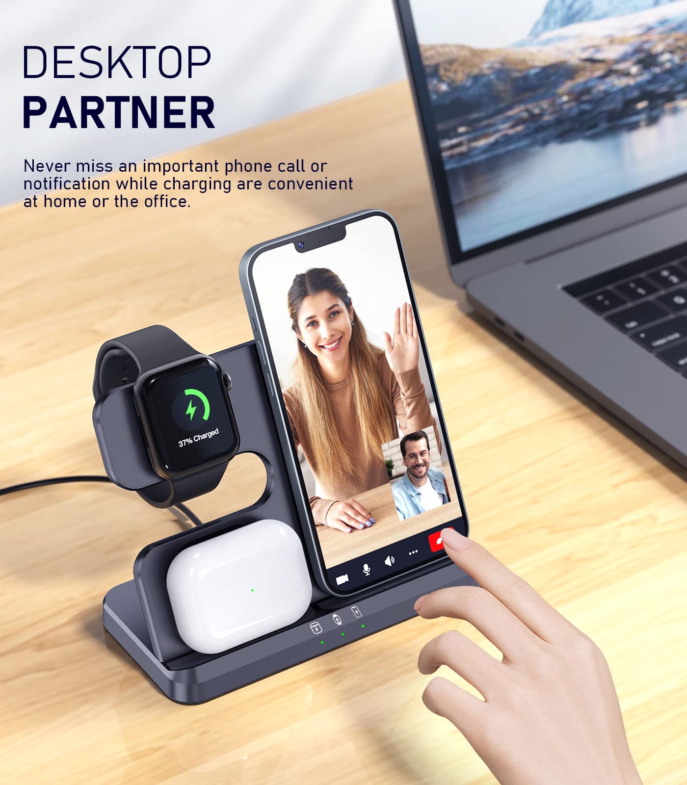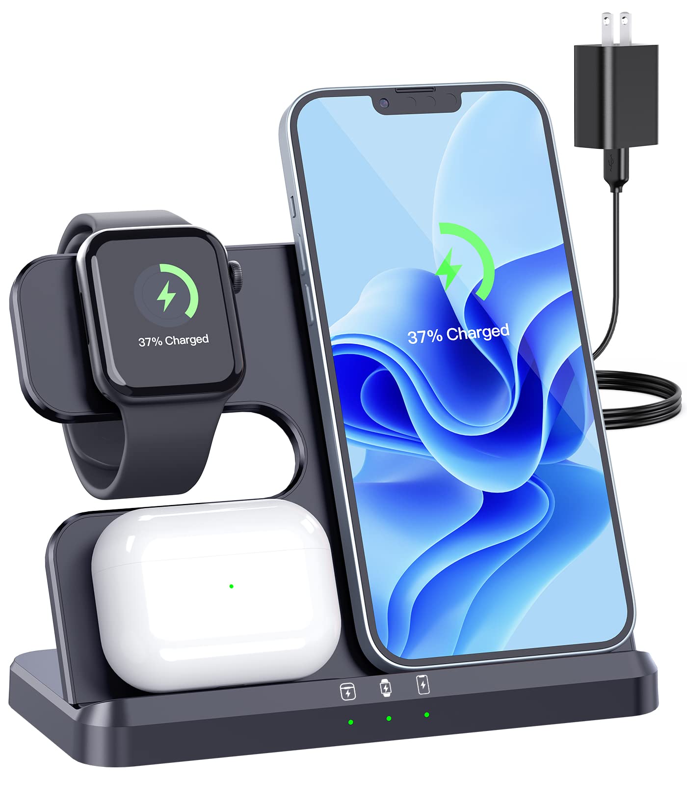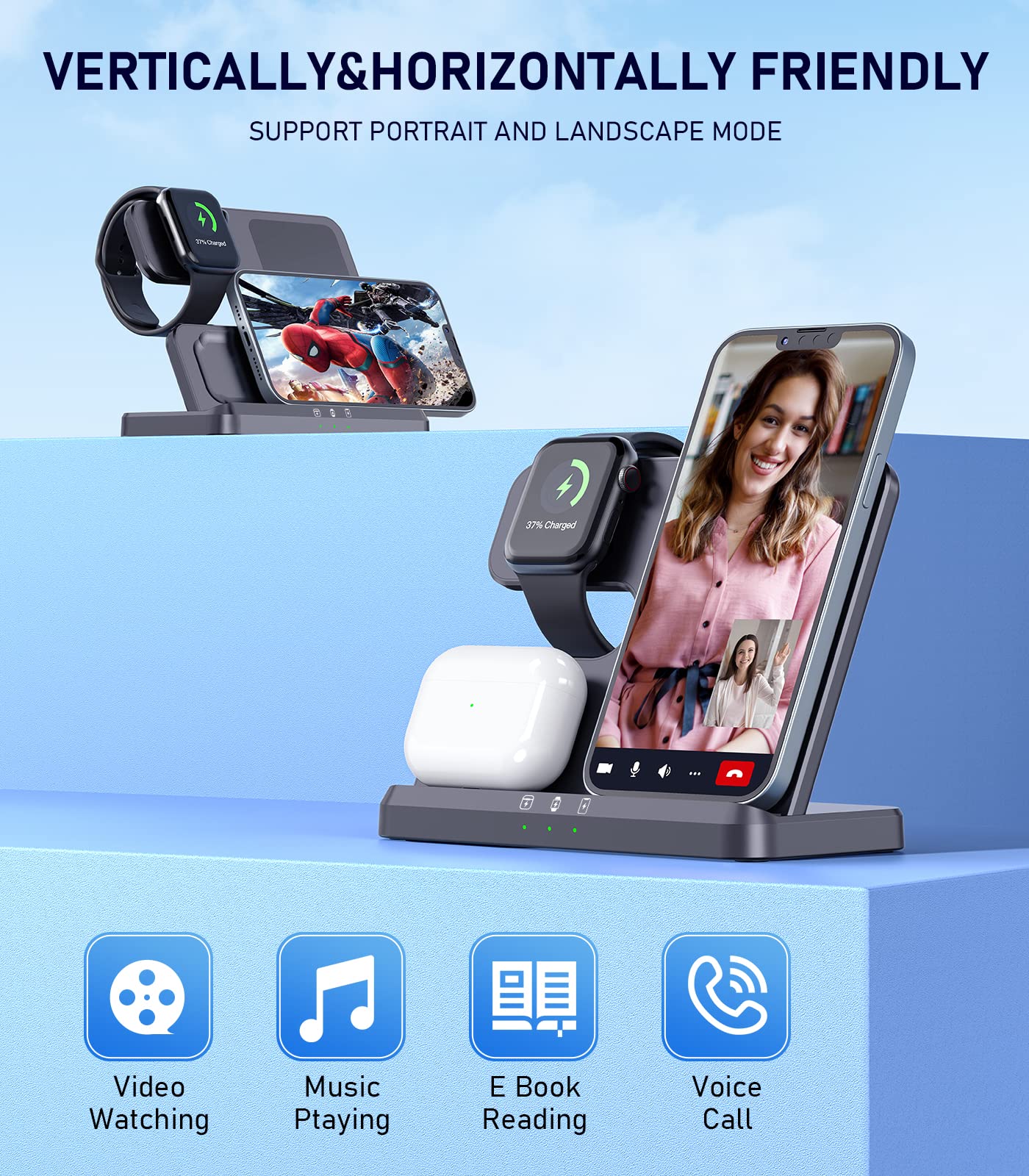 - 【3-in-1 Wireless Charger】Ah, the holy Apple trinity. If you have an iPhone, Apple Watch, and AirPods (or honestly, any kind of earbuds with a wireless charging case), you'll love this Charger Stand, because there are no cords to trip over, and it’s so convenient to grab your phone and just go without fumbling. (which will charge at the fastest 20W speed)