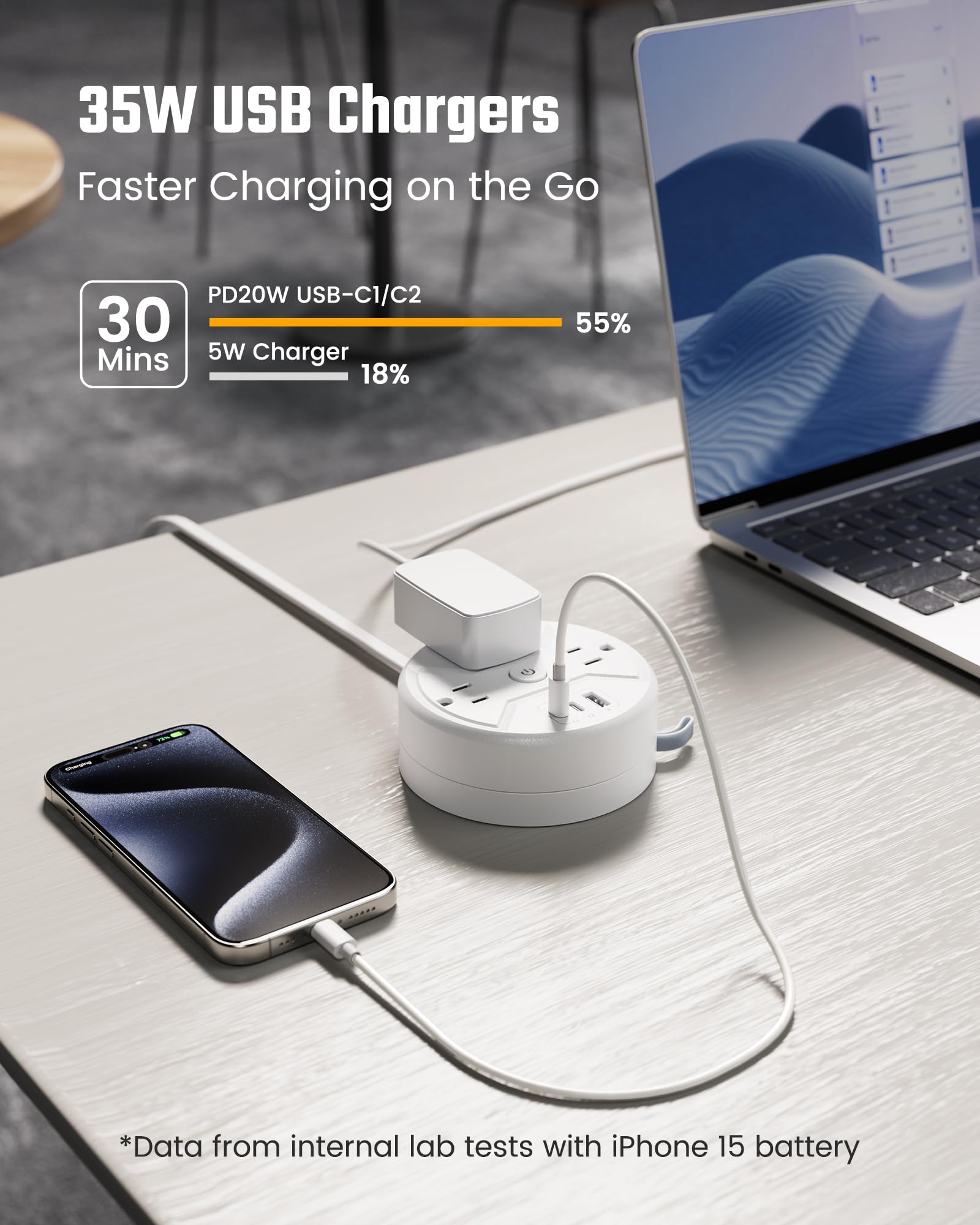 - COMPACT & LIGHTWEIGHT: Measures 4.2”×4.2”×1.5”, this palm-sized travel extension cord integrates 3 no-blocking AC outlets (10A) and 3 USB ports (35W) in one, delivering ample power to all your on-the-go devices. Weighs only 8.8 oz, as light as an apple, this portable extension cord won’t be a burden for your travels and business trips. Pack less, travel light.