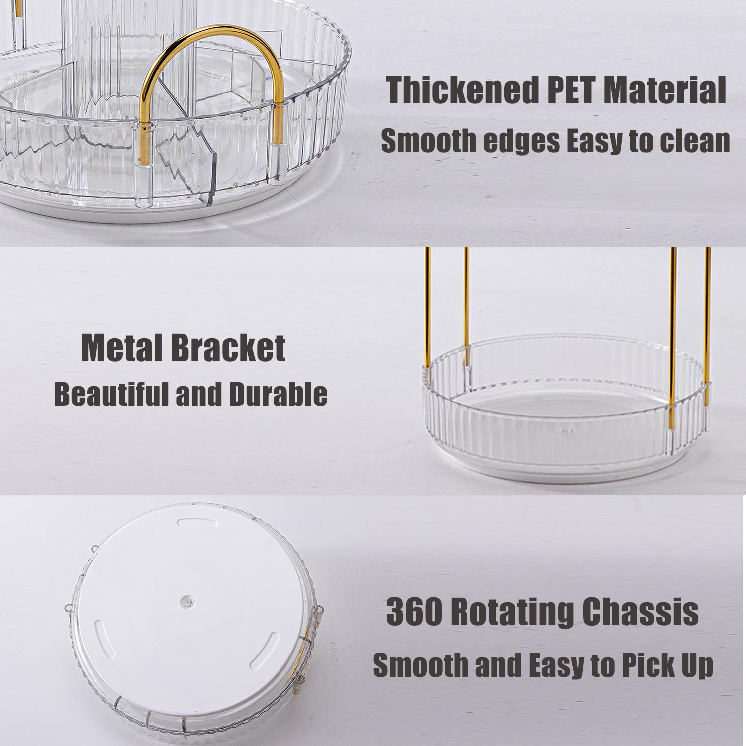 - 【360°Spinning Lazy Susan Organizer】- The Large Capacity Skincare Make Up Storage is smooth, 360-degree rotating, easy to take Items from all directions, bring you a more convenient experience. And the tray edge is high enough to prevent cosmetics from falling when rotating.