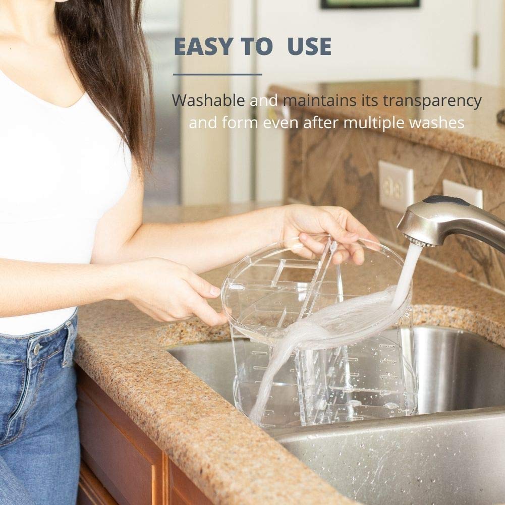 - EASY TO SET UP & USE: Adjustable bathroom cosmetic organizer can easily be assembled and disassembled in a matter of minutes without having to follow any complex steps. The vanity makeup organizer is washable. This perfume organizer maintains its shape even after multiple washes.