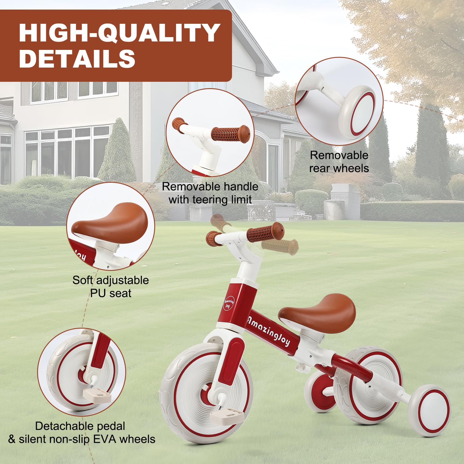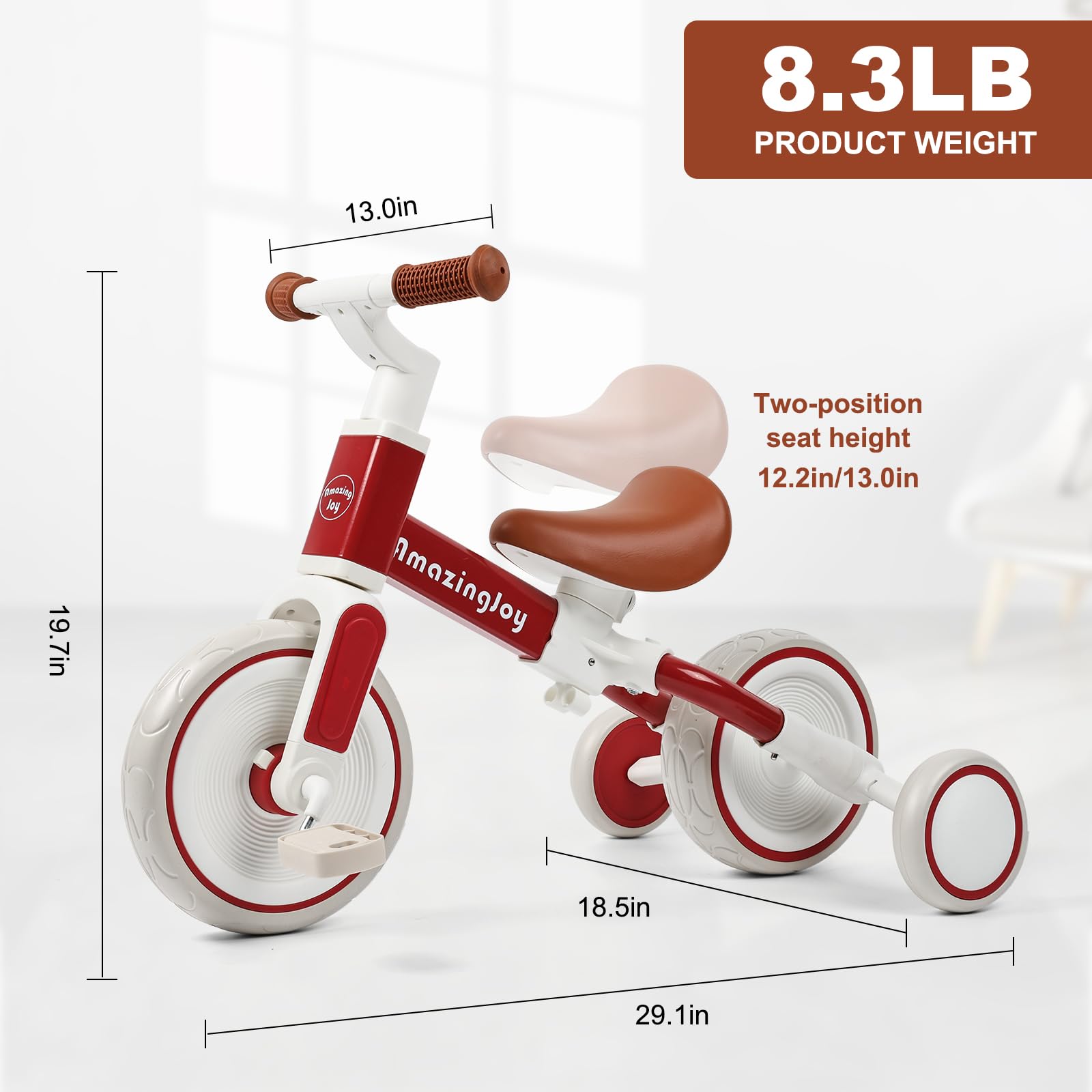 - 【Multifuncional design】whether it's leisure time, playtime or family time, this lightweight, single-piece tricycle is ready to go!This 1-3 years old toddler tricycle can switch multiple modes, pedal-less four-wheeled toddler tricycle 1-3 mode; no pedal two wheels balance bike; four wheels bike; two wheels bike; the parent can decide whether to leave pedal when use the gifts for 2 year old girls and boys.This 3-wheel balance bike for one year olds is sturdy and durable, easy to switch between different modes, adjustable design for growing kids.