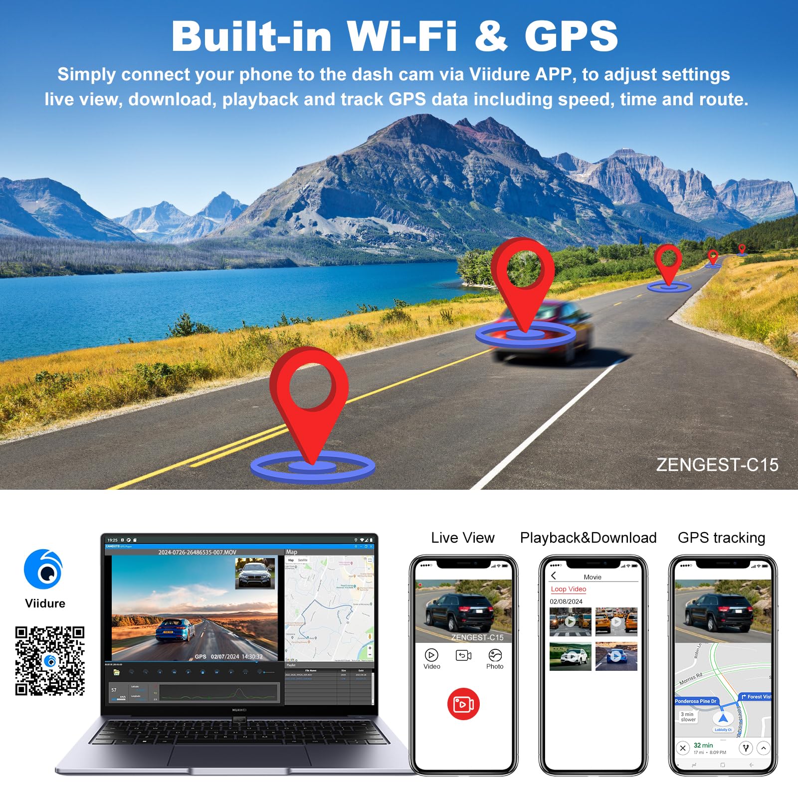 - Dash Cam with GPS and Speed: Zengest dash cam with GPS which enables you to view real-time live speed and compass on the 3” IPS wide camera screen. It records precise driving routes, locations, and speed stamps directly on the video via WiFi using the App or with our Windows and Mac GPS Player, which will provide further additional evidence if an accident occurs.