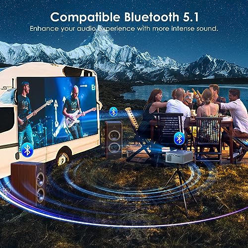 - π§[ Immersive Audio and Bluetooth 5.1 ] - Immerse yourself in a mesmerizing audio experience with the built-in high-fidelity 5W speaker of this movie projector, which delivers rich bass and crystal-clear treble. The 5.1 surround sound system further enhances the auditory immersion. Additionally, you can connect your Bluetooth-enabled projector to an external speaker for an enhanced audio journey.