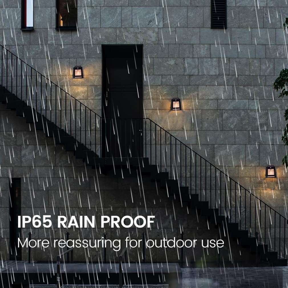 - 【IP65 Waterproof】 GORLDE solar lights outdoor has a new ABS plastic casing, the solar panel and the casing are perfectly matched, the rainwater will flow into the inner water groove of the casing along the solar panel and flow out through the small hole at the bottom, reaching IP65 waterproof; the solar outdoor light can work normally at -5~70℃, specifically designed to withstand extreme weather conditions resistant rain snow, provide additional safety and security for your home.