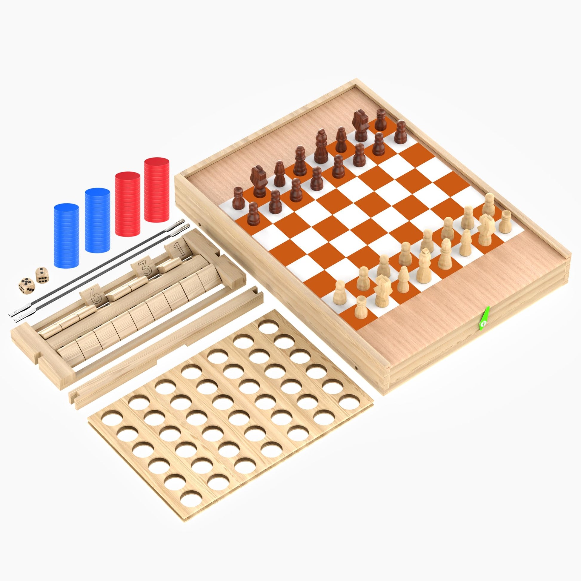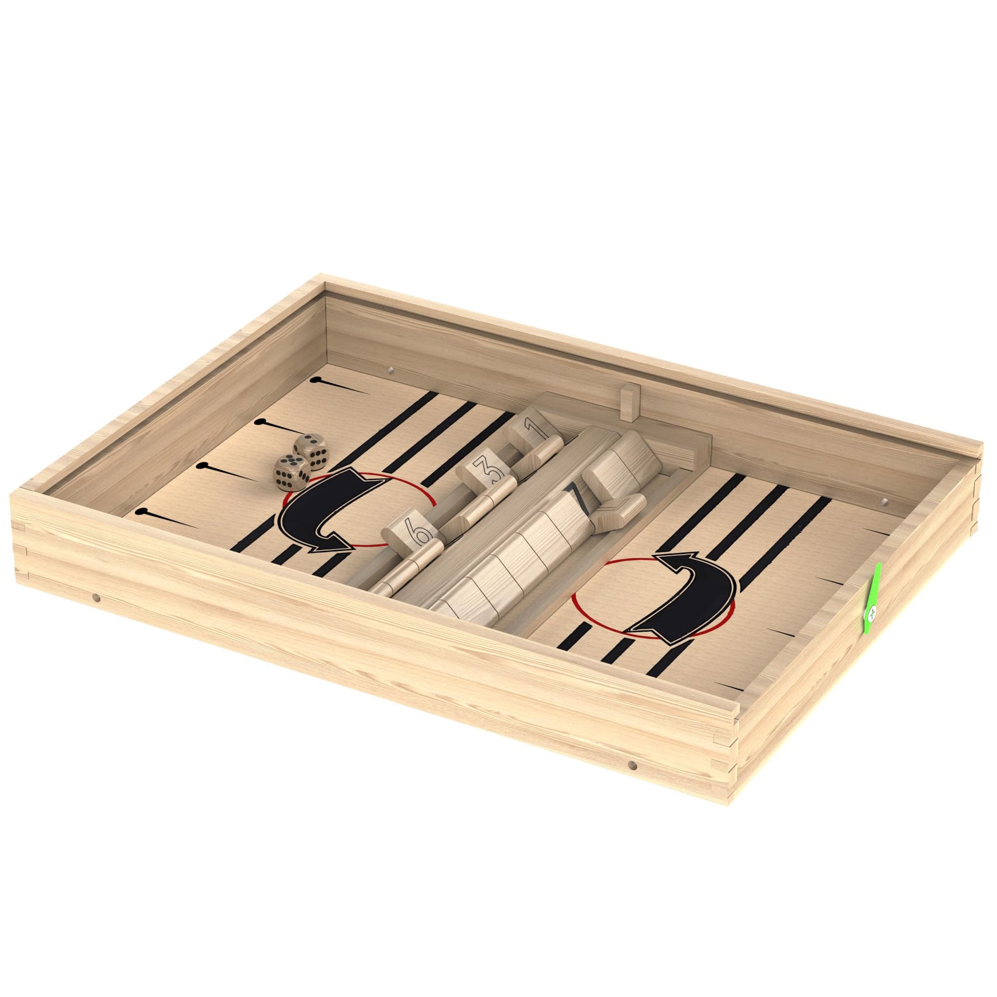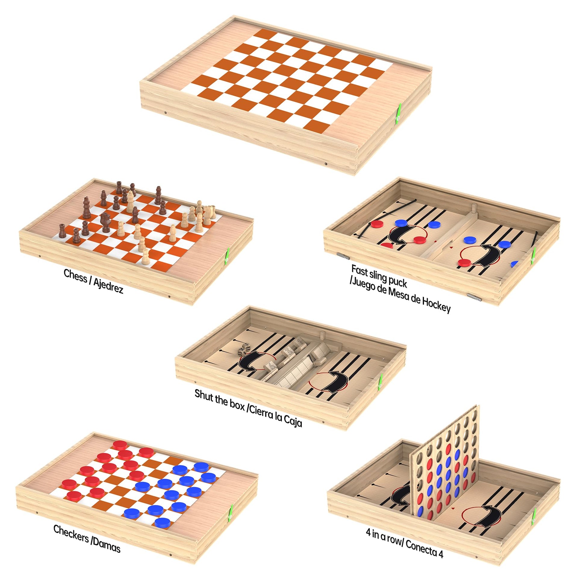 - 5 IN 1- A collection of 5 fun games that,Chess, Checkers, Shut the Box, Hockey Game Sling Puck.