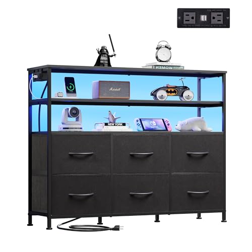 - ă⨠Powered Storage DresserăSay goodbye to messy wires! The 6 Drawers Dresser is equipped with 2 AC sockets +2 USB ports, 1.5m flexible cable length, TV, game console, router a power board can be done, instant increase desktop cleanliness by 50%, through UL/ETL certification, electricity safety!