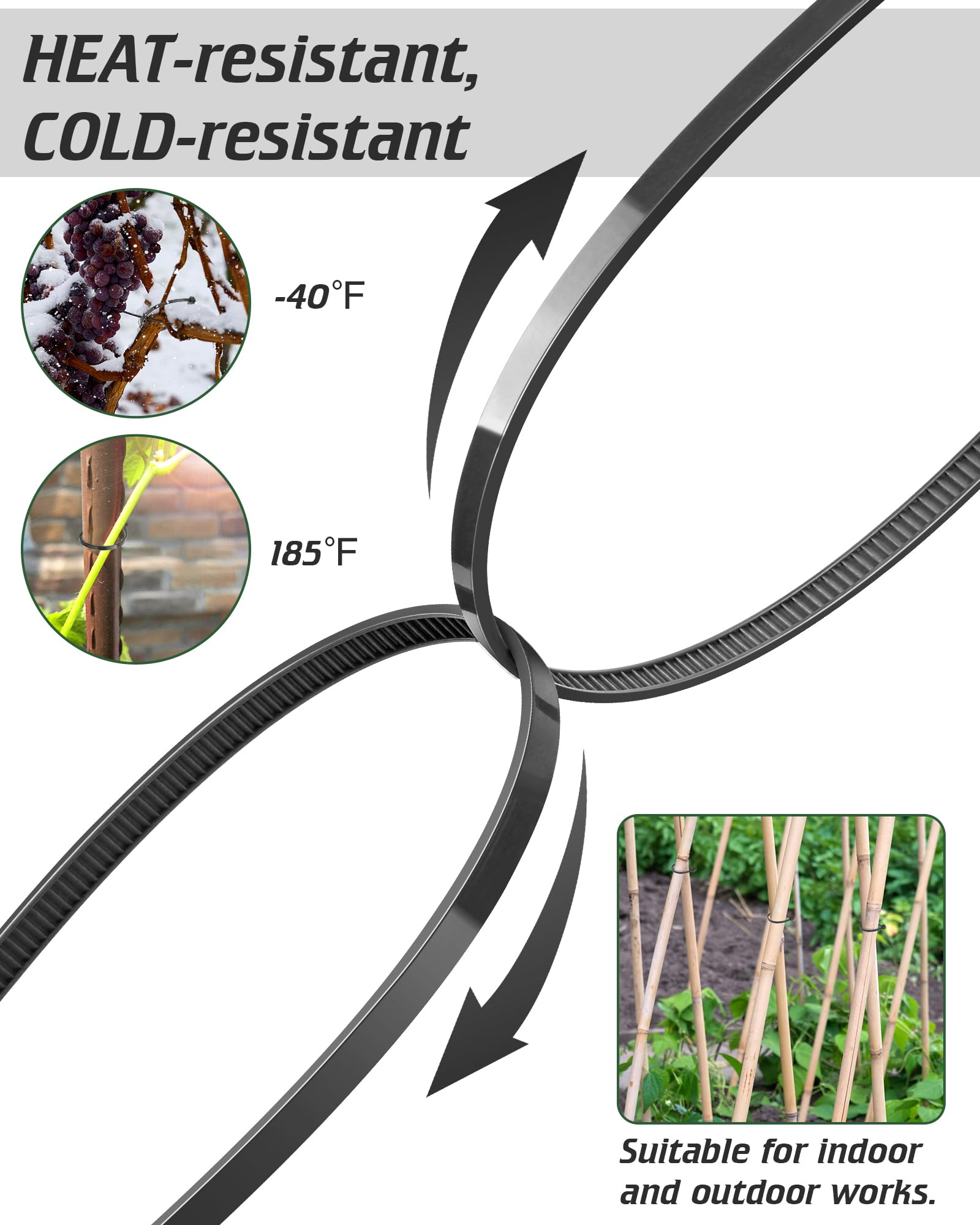 - 【HEAT-resistant, COLD-resistant】Made with industrial-grade nylon 66 material, these cable ties can withstand extreme temperatures ranging from -40℉ to 185℉. They offer the best resistance to outdoor exposure, making them perfect for all-weather use