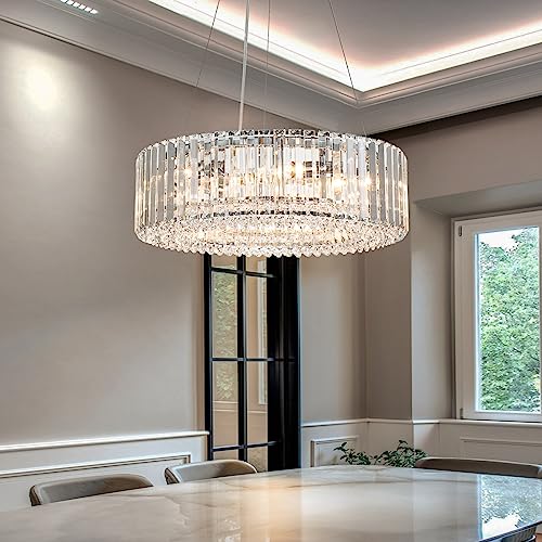 - APPLICATION: This modern crystal chandelier has a beautiful appearance and is a large size fixture. It is suitable for living room, dining room, island, bedroom, hallway, foyer front, dining room, cafe and so on. No matter where you put it, it will add a colorful touch to your home décor. Add comfortable, harmonious home atmosphere.