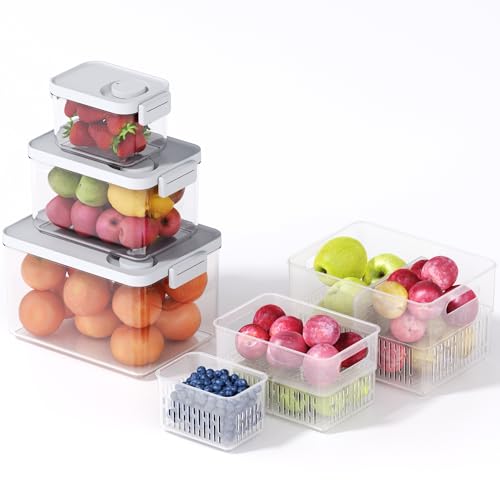 6 Pack Large Fruit and Vegetable Fridge Storage Containers