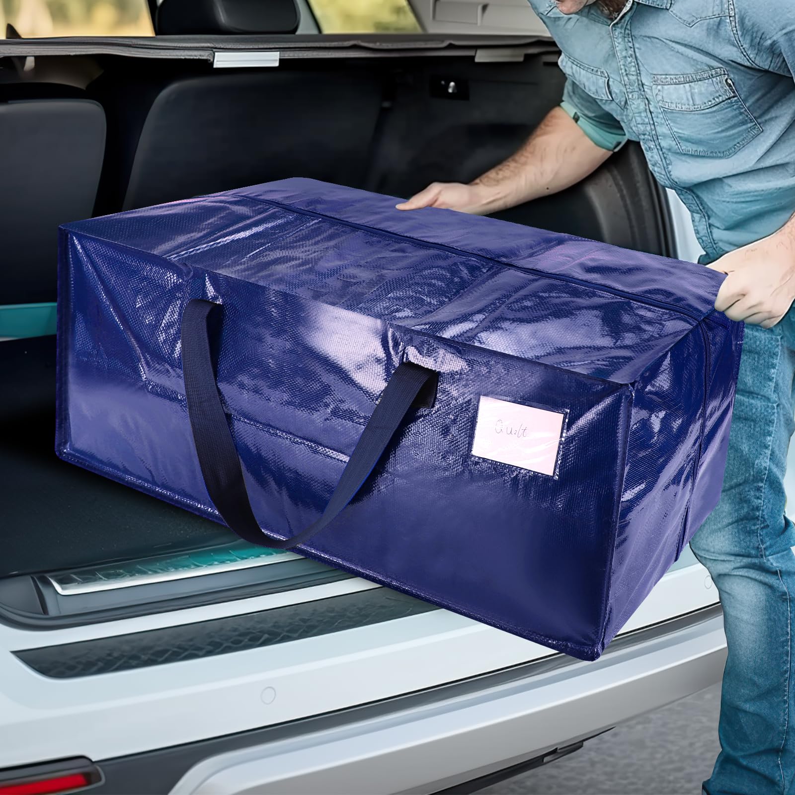 - Material: Moving totes is made of PP braided material, fine workmanship, waterproof, dustproof, wear-resistant, durable, and can store quilts or clothes for a long time to keep them clean and tidy.The moving bag has label pockets in outside , You can put label cards into it ,This allows you to identify stored items without opening organizer packing bags