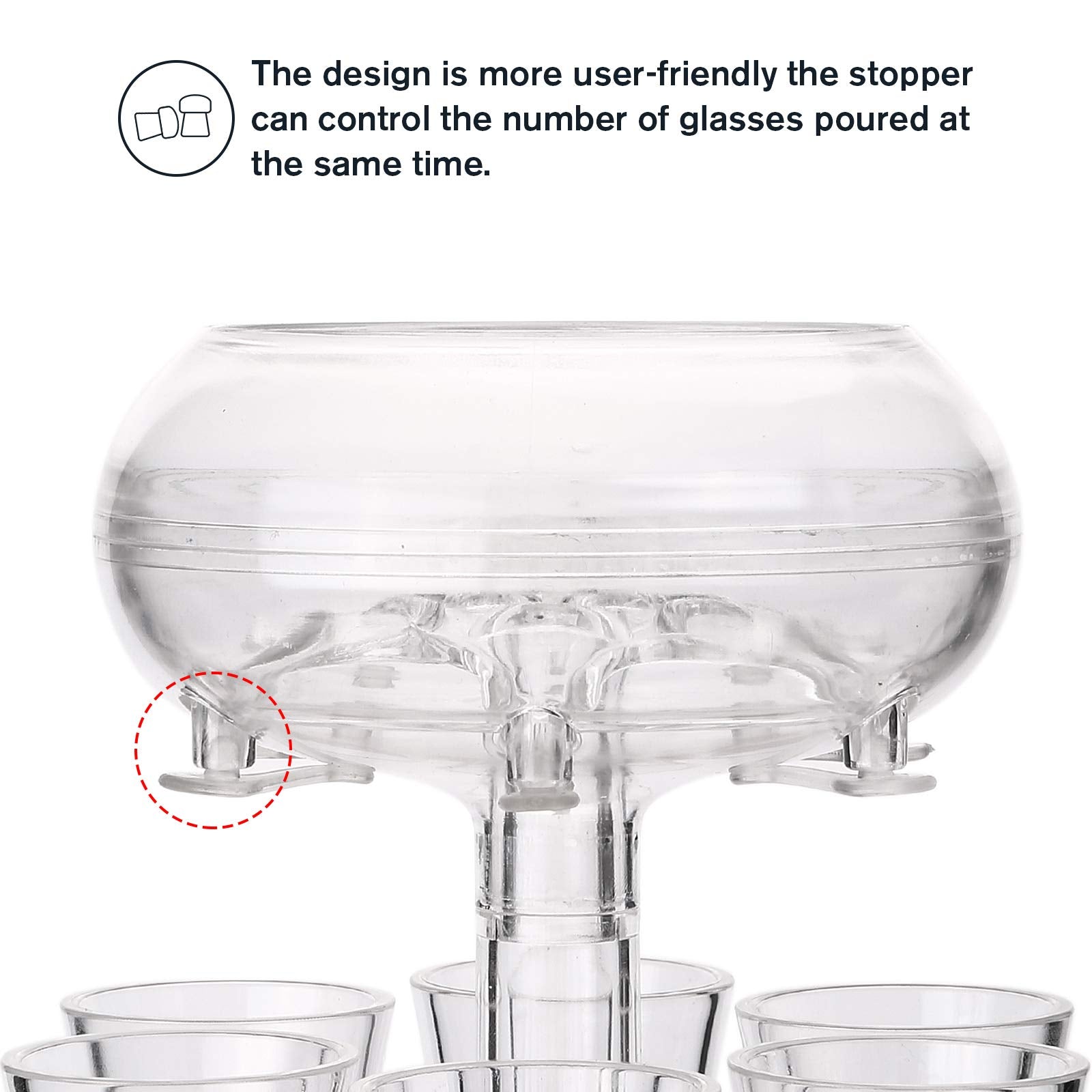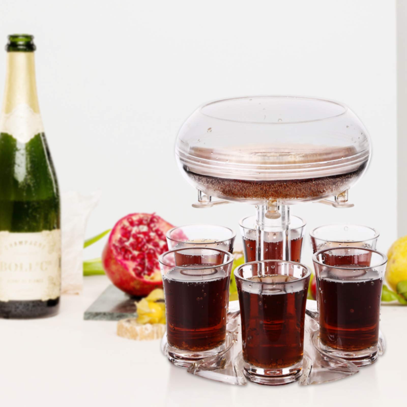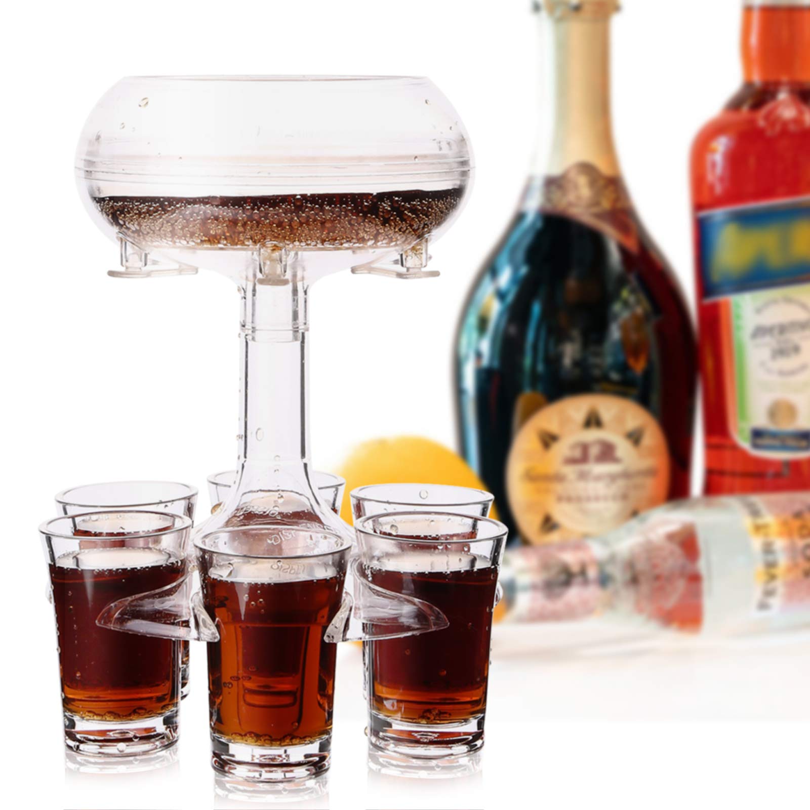 - 【Pours 6 Shots At Once & A Wine Decanter】 The Dispenser with six shots will allow you to easily fill up to six shot glasses at once with your favorite beverage and then hold them up, all in one! Fills up multiple shot glasses at one time, saves your time, prevents wastage, or spillages.