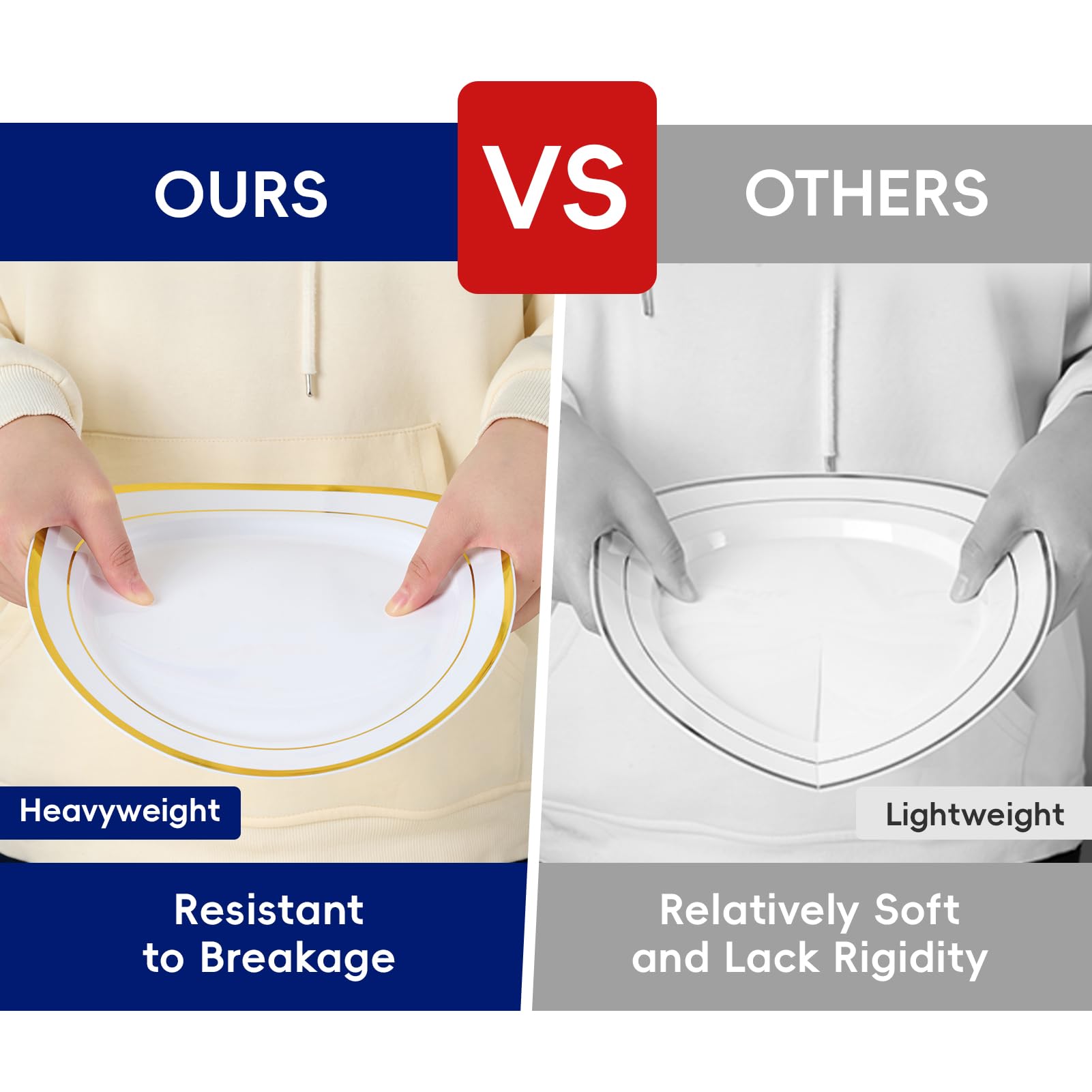 - PREMIUM QUALITY&REUSABLE: Every gold disposable dinnerware set is strong enough to hold a full plate of food while sitting or standing. Gold disposable cutlery has extra thick handles, and you can even wipe it clean after use for the next use