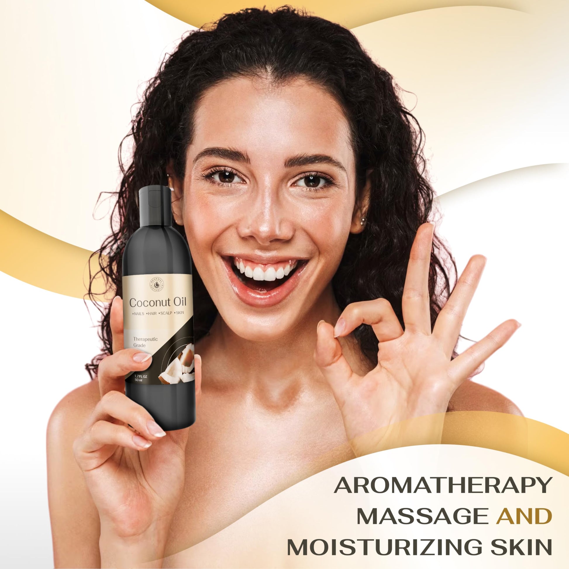8 Oz Coconut Oil, Sweet Oil - Hair and Skin Softener, Carrier Oil for Essential Oils - Massage Oil, Cold Pressed Oil for Body,Body Oil After Shower, Fractionated Coconut Oil