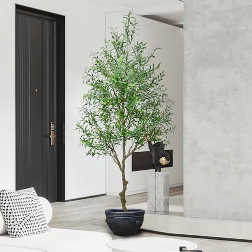 - 【PERFECT SIZE】Artificial olive tree indoor 8 feet with 6.3 inches diameter and 6.1 inches high black pot, the tree size is well-designed to fit the home aesthetics. This is a large artificial trees for home decor indoor that needs to be paired with a large pot to balance the whole and create a perfect decorative effect.