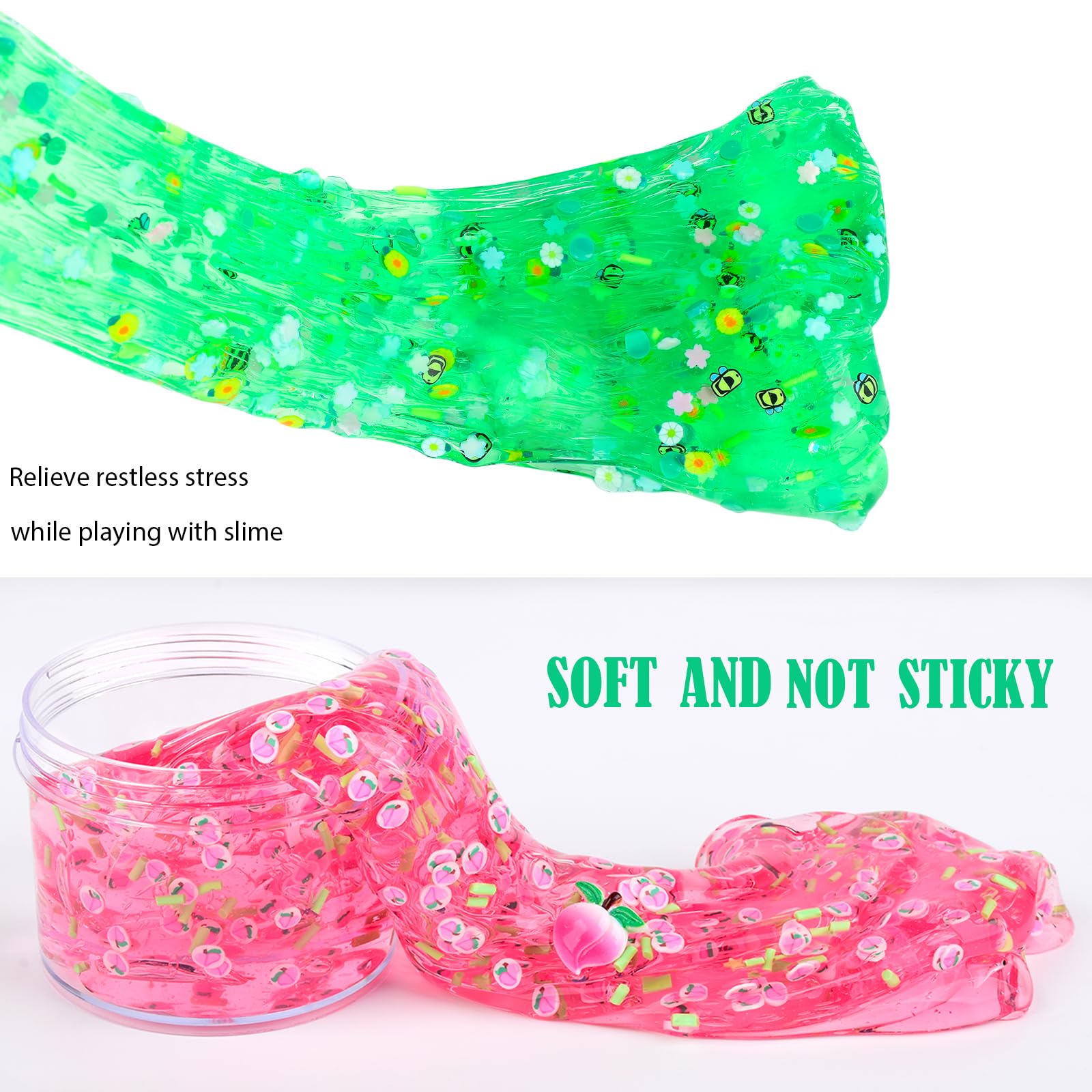 - π΅ Clear crystal slime is super fun, soft non-sticky, rubbing, rolling, folding super smooth. Slime toys excellent tools to relieve stress.