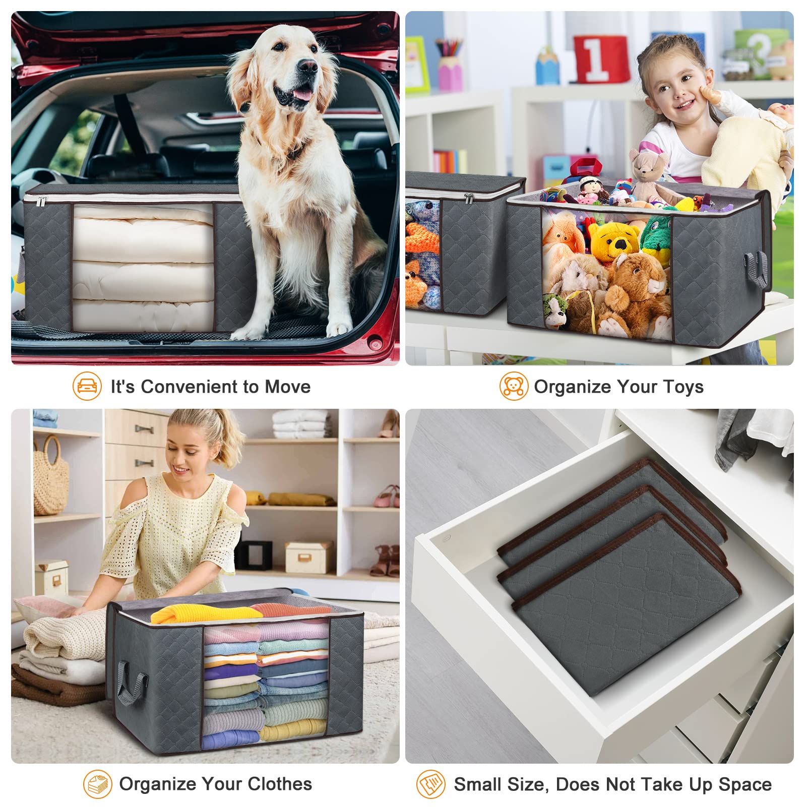 - đăMultifunctional & Foldableă Foldable Clothing Organizer Bags, The storage bags set can be used for closet or under the bed. It is suitable for dormic, attic, basement and bedroom, or more. The beautiful design is also for room decor.
