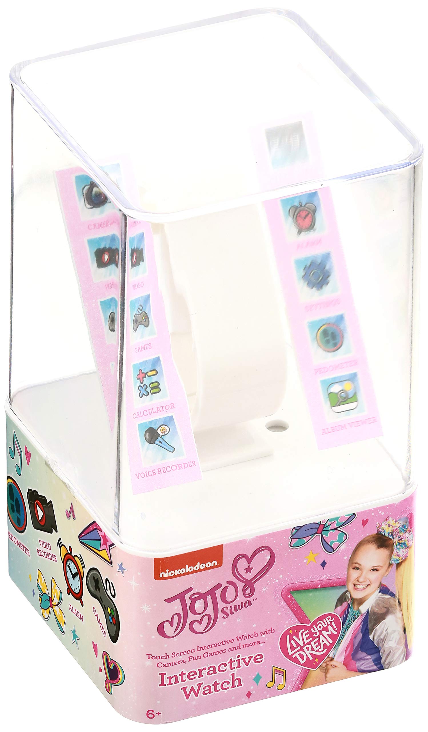 - This Jojo Siwa kids wearable includes a selfie camera for taking pictures, photo album viewer, video player, voice recorder, calculator, alarm clock, pedometer step counter, various playable games, and changeable watch faces