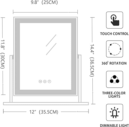 - 💄【Smart Touch Control & Memory Function】This vanity mirror with lights has 3 touch buttons, turn on/off the light up touching the sensor switch, Press “M” button to change the color modes, long press “P” button to adjust the led brightness. This lighted makeup mirror is specially designed memory functionfunction, it will return to the same brightness and color at you last using when turned on again.