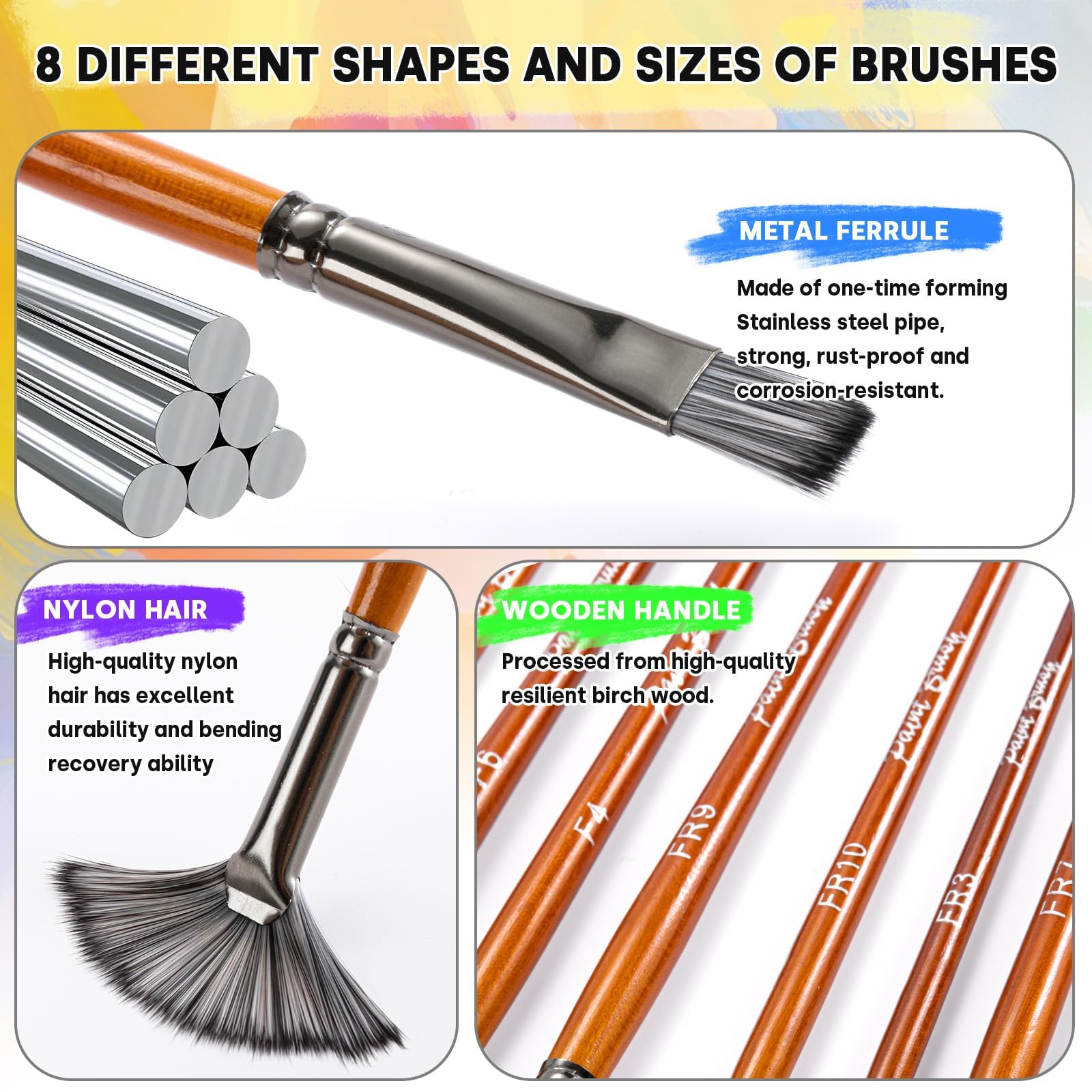 - PREMIUM BRUSHES AND PALETTE: To inspire new creativity, DRAWLEX has hand-picked 8 different shapes and sizes of brushes plus 1 premium palette to meet all your painting needs, whether it's fine details or large areas to bring each stroke to life!