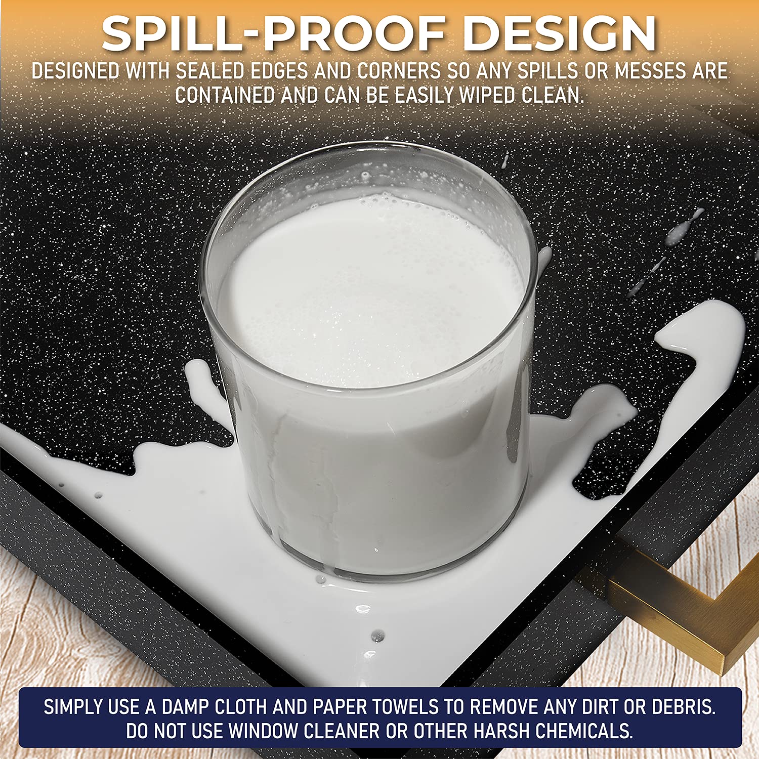 - Spill Proof Design - Designed with sealed edges and corners so any spills or messes can be easily wiped clean. Simply use a damp cloth and paper towels to remove any dirt or debris. Do not use window cleaner or other harsh chemicals.