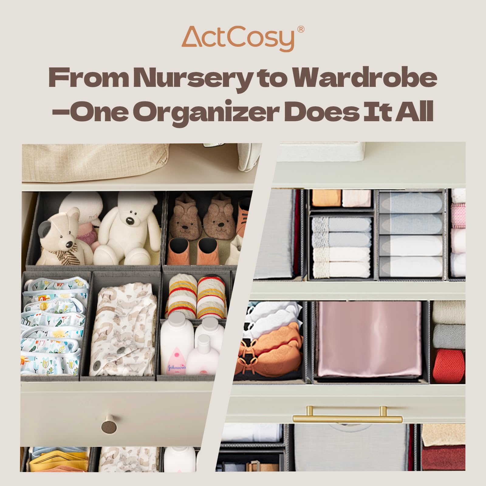 - [Multifunctional] - Not only being cloth drawer organizer for closet or dresser drawer, but also it can be drawer organizer for nursery. Besides storing bra, socks, underwear, ties,etc , it can store baby clothes, baby diaper, baby bib, etc.